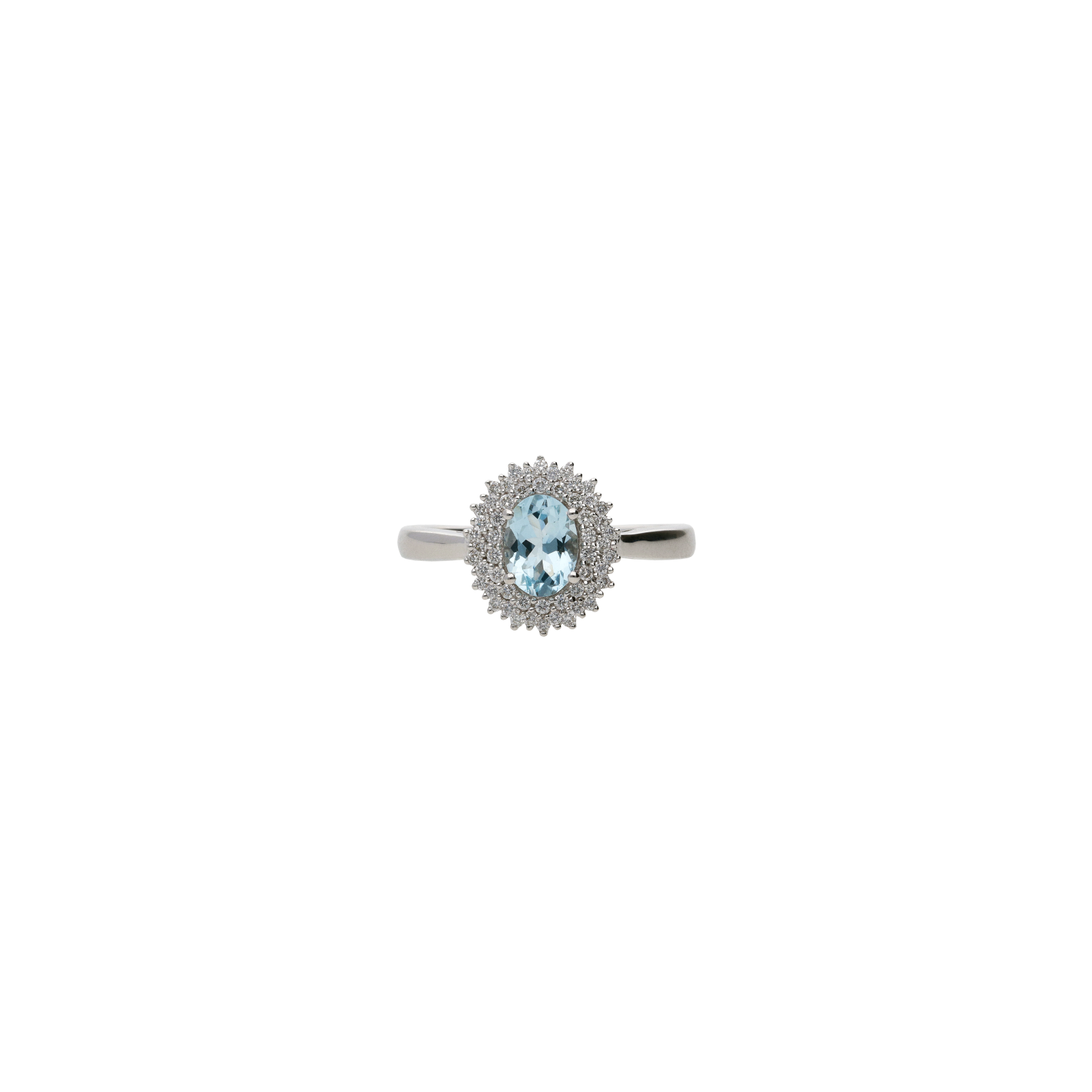 Anello rosetta in oro bianco con acquamarina e diamanti bianchi - 254189
