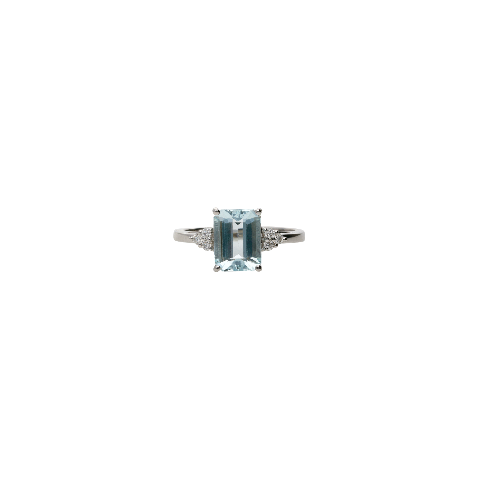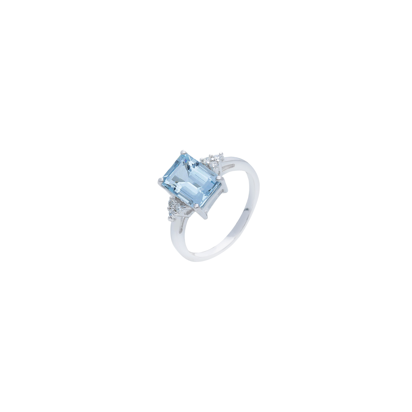 Anello in oro bianco 18 carati con acquamarina taglio ottagonale e diamanti bianchi taglio brillante
