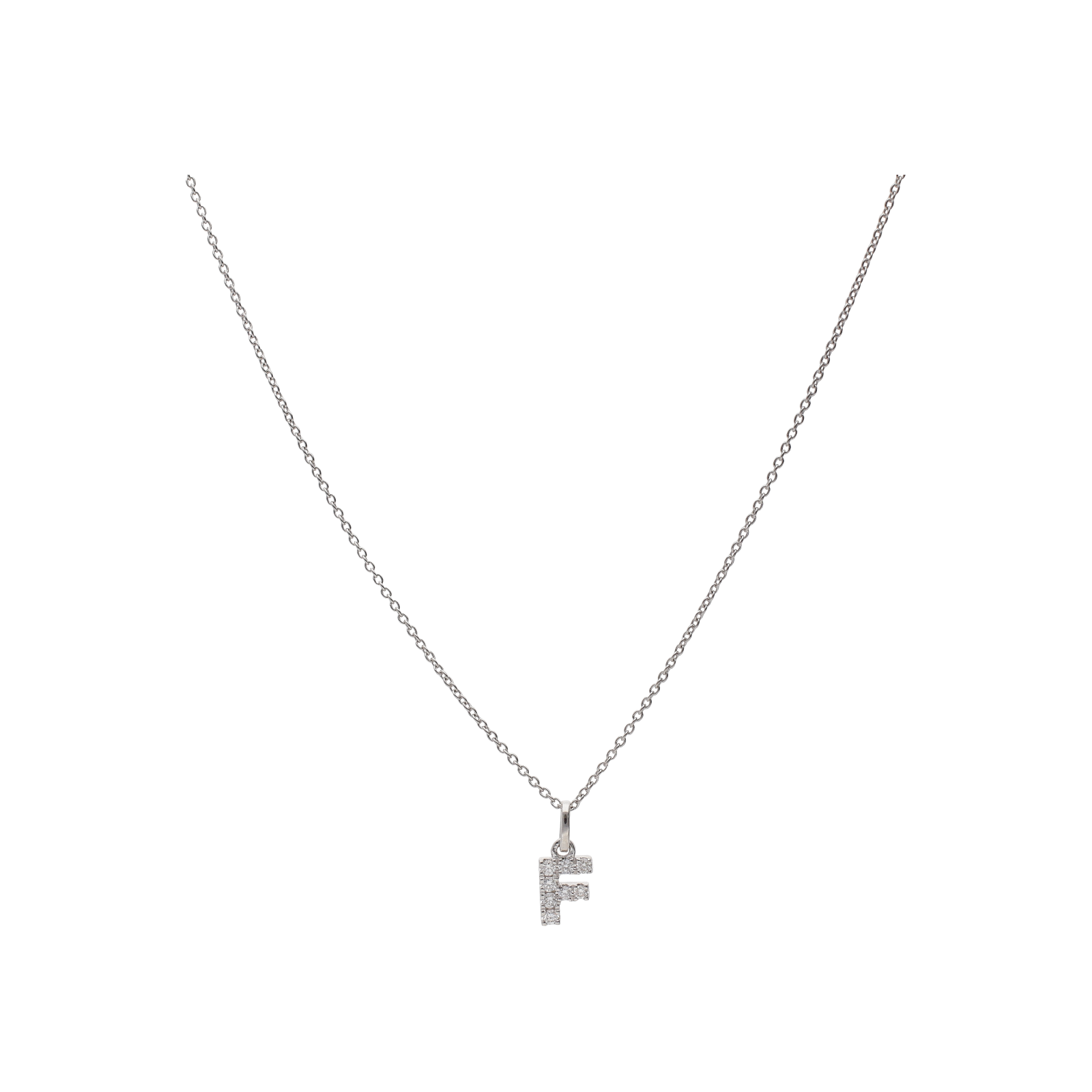 Collana in oro bianco con lettera "f" pavé di diamanti bianchi - 370-XN2495
