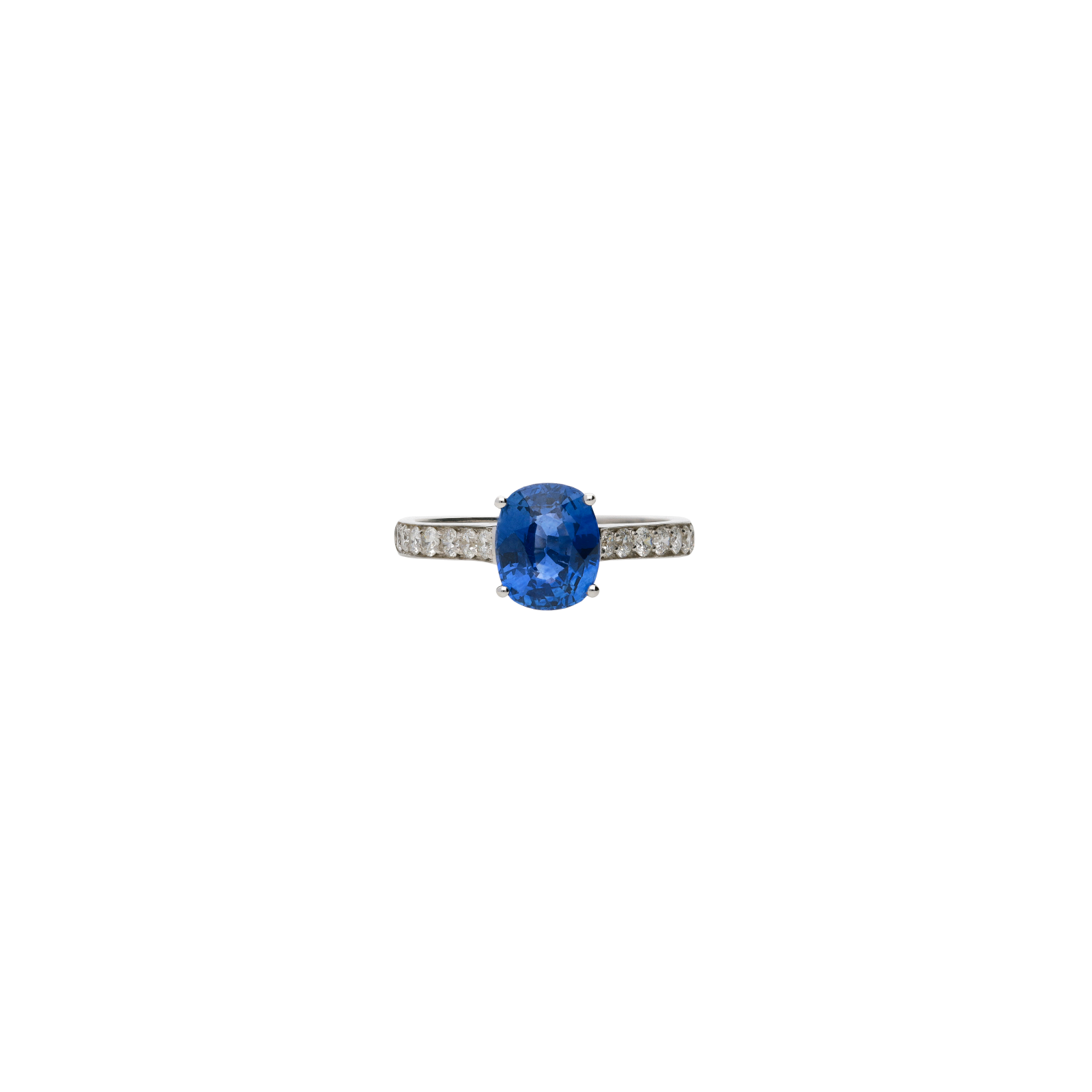 Anello in oro bianco con zaffiro blu e diamanti - 44128