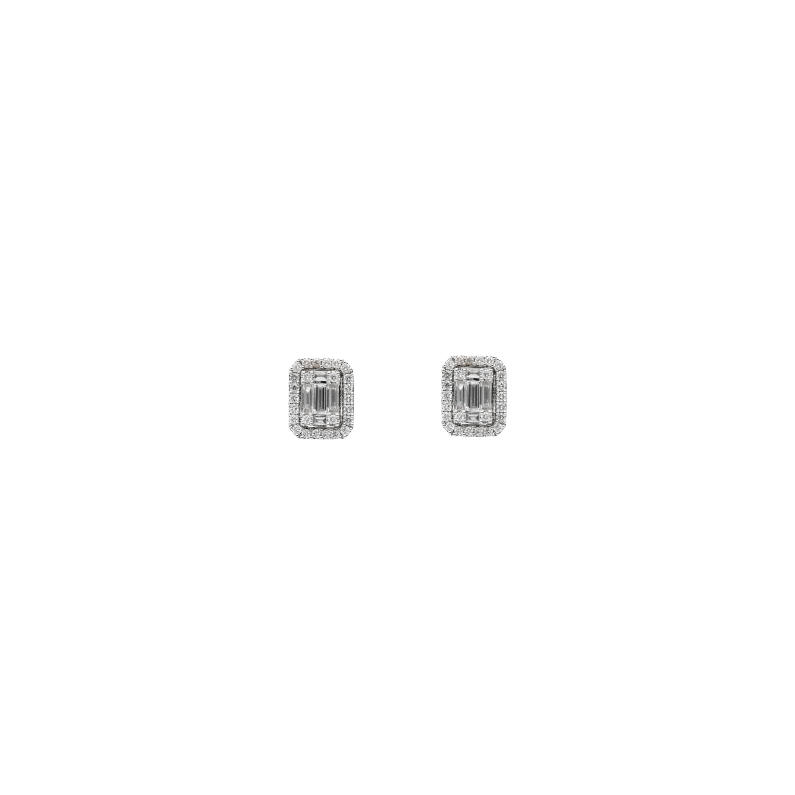 Orecchini In Oro Bianco 18 Carati Con Diamanti Bianchi Taglio Baguette E Taglio Brillante