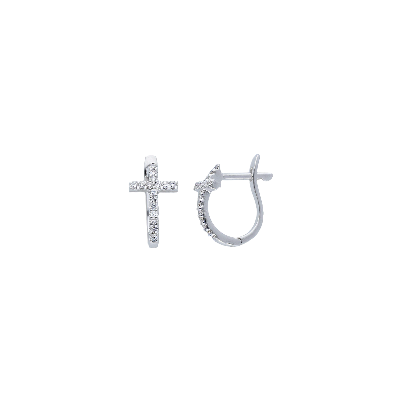 Orecchini croce a cerchio piccolo in oro bianco con diamanti - VE27254DW