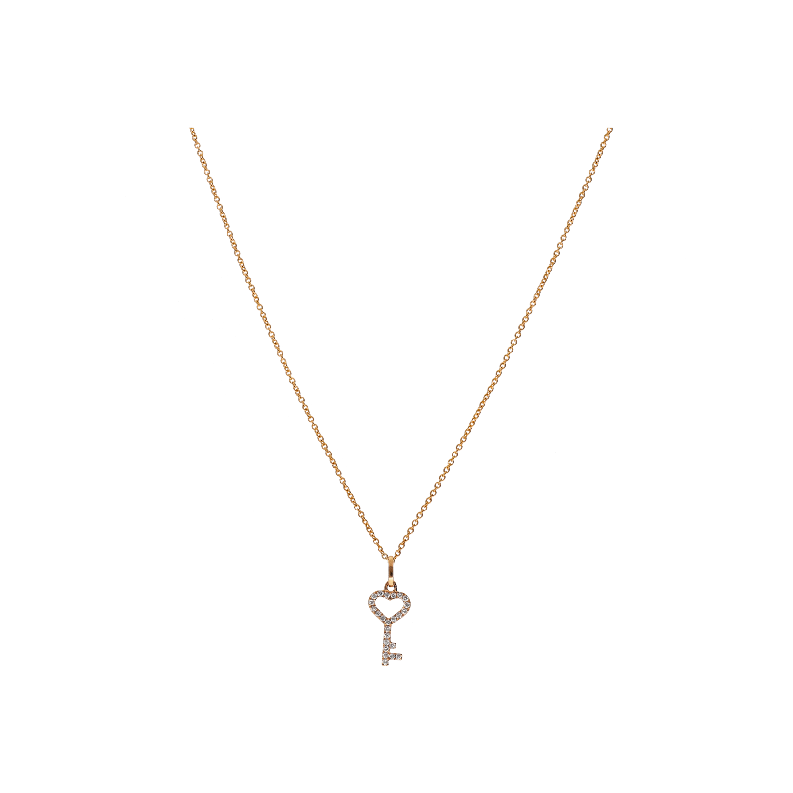 Collana girocollo in oro rosa con pendente chiavetta a cuore e diamanti - 370-XN2388
