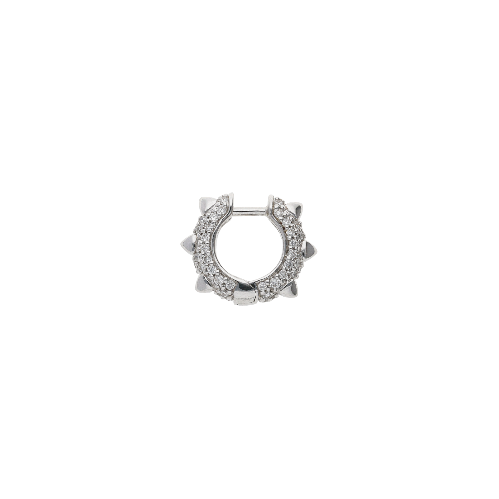 Orecchini collezione piramidi a cerchio modello piccolo in oro bianco e pavé di diamanti bianchi taglio brillante