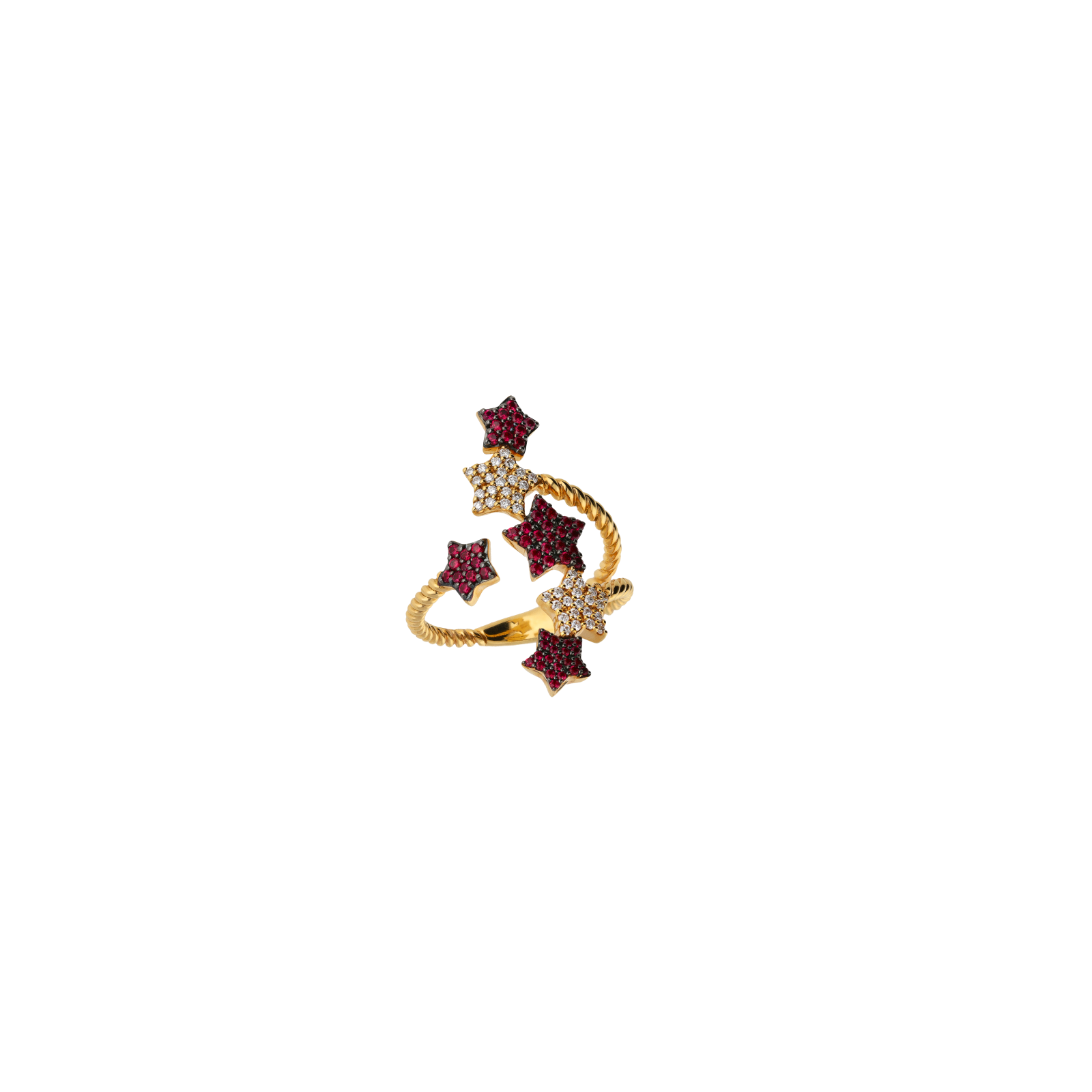Anello stelle in oro rosa con diamanti e rubini - VR27714RUDP