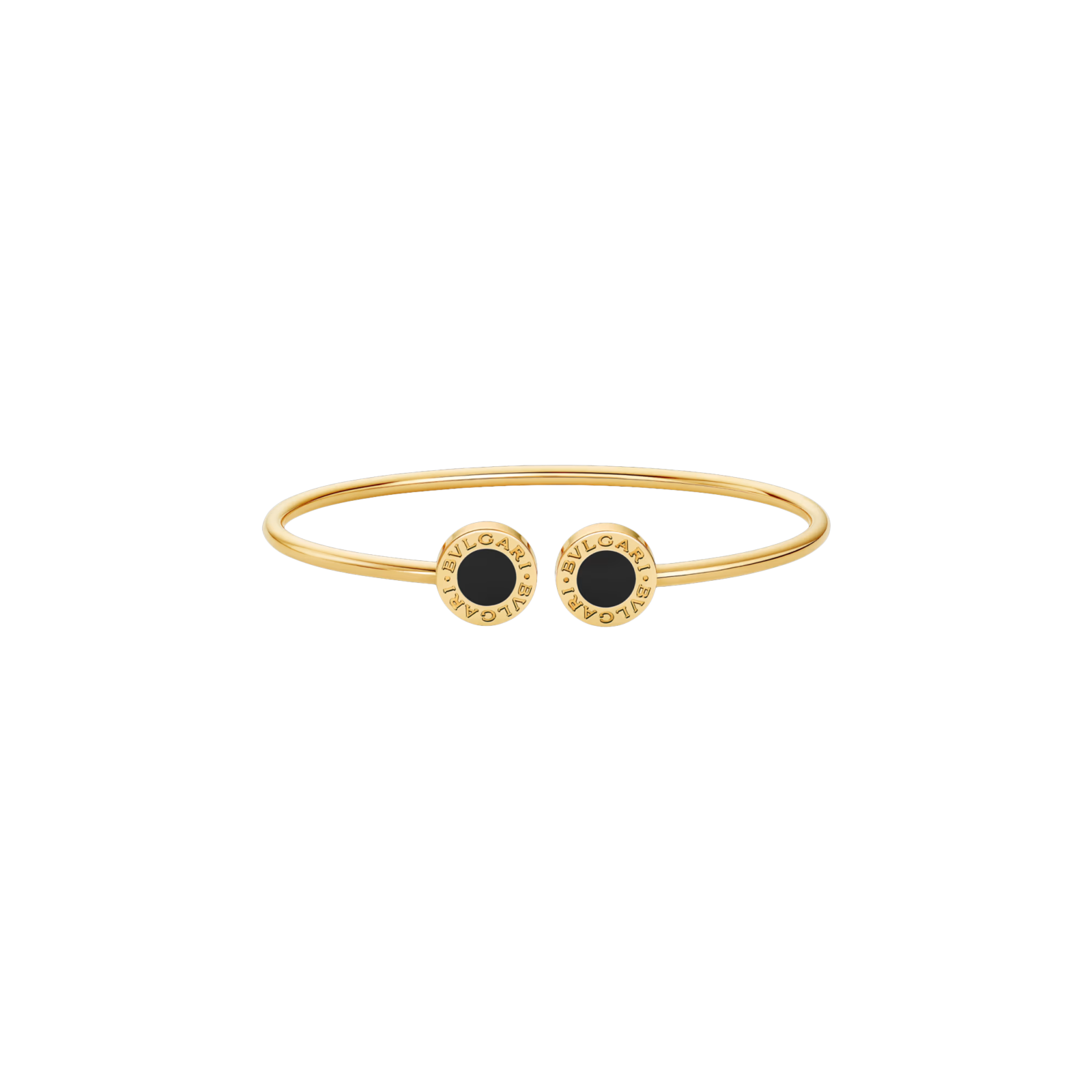 Rievocando le origini romane della maison, il bracciale BVLGARI BVLGARI in oro giallo 18 kt dà vita a un sofisticato connubio fra tradizione e modernità, stile e creatività. Ispirato alle iscrizioni incise lungo i bordi delle antiche monete romane, l'emblematico motivo circolare del gioiello è adornato da inserti in onice nera. Un modello dal fascino contemporaneo e dalla versatile eleganza. Bracciale BVLGARI BVLGARI in oro giallo 18 kt con inserti in onice.