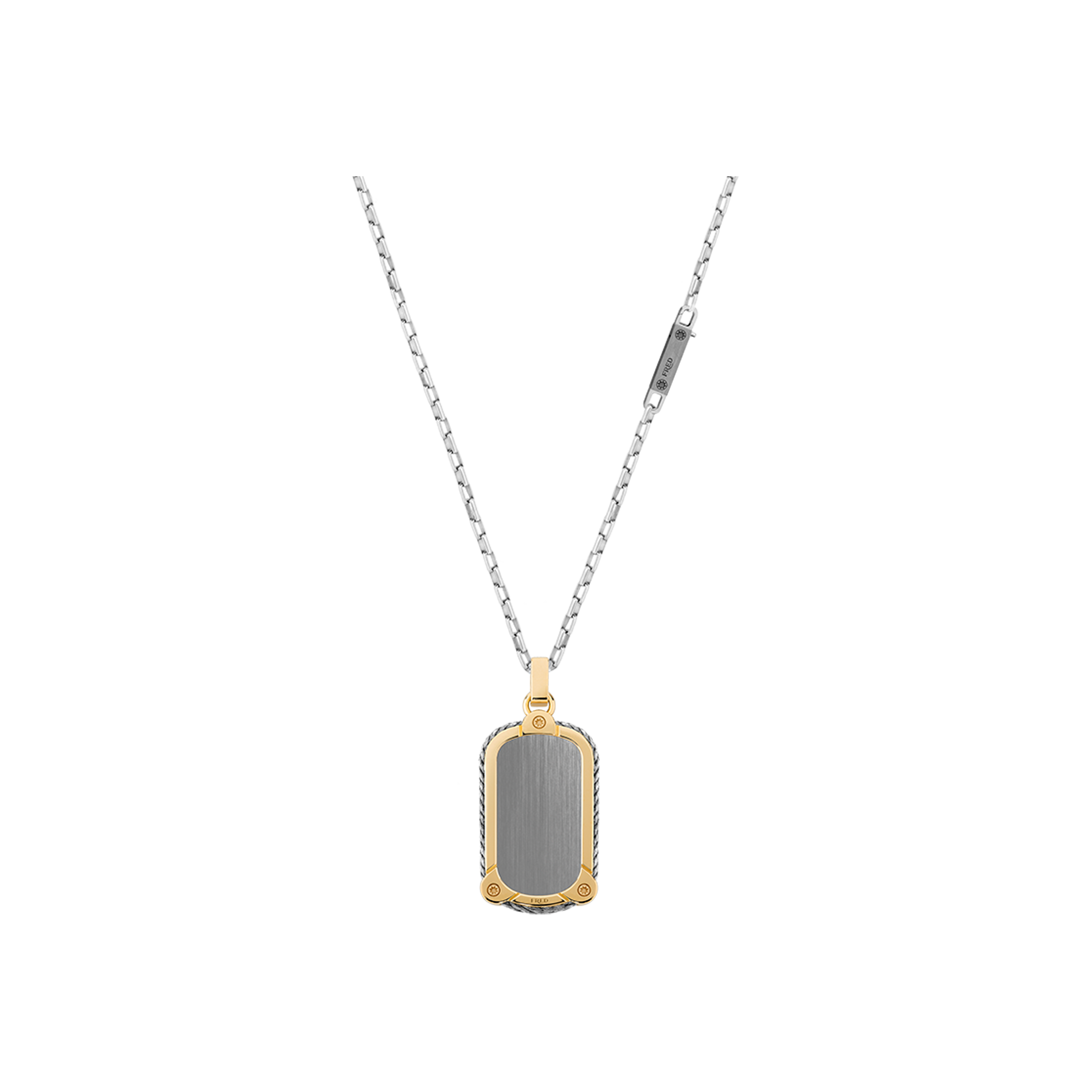 Pendente in oro giallo 18K con cordino in acciaio. Catena venduta separatamente. Lunghezza del ciondolo: 27 mm Larghezza del ciondolo: 15,8 mm