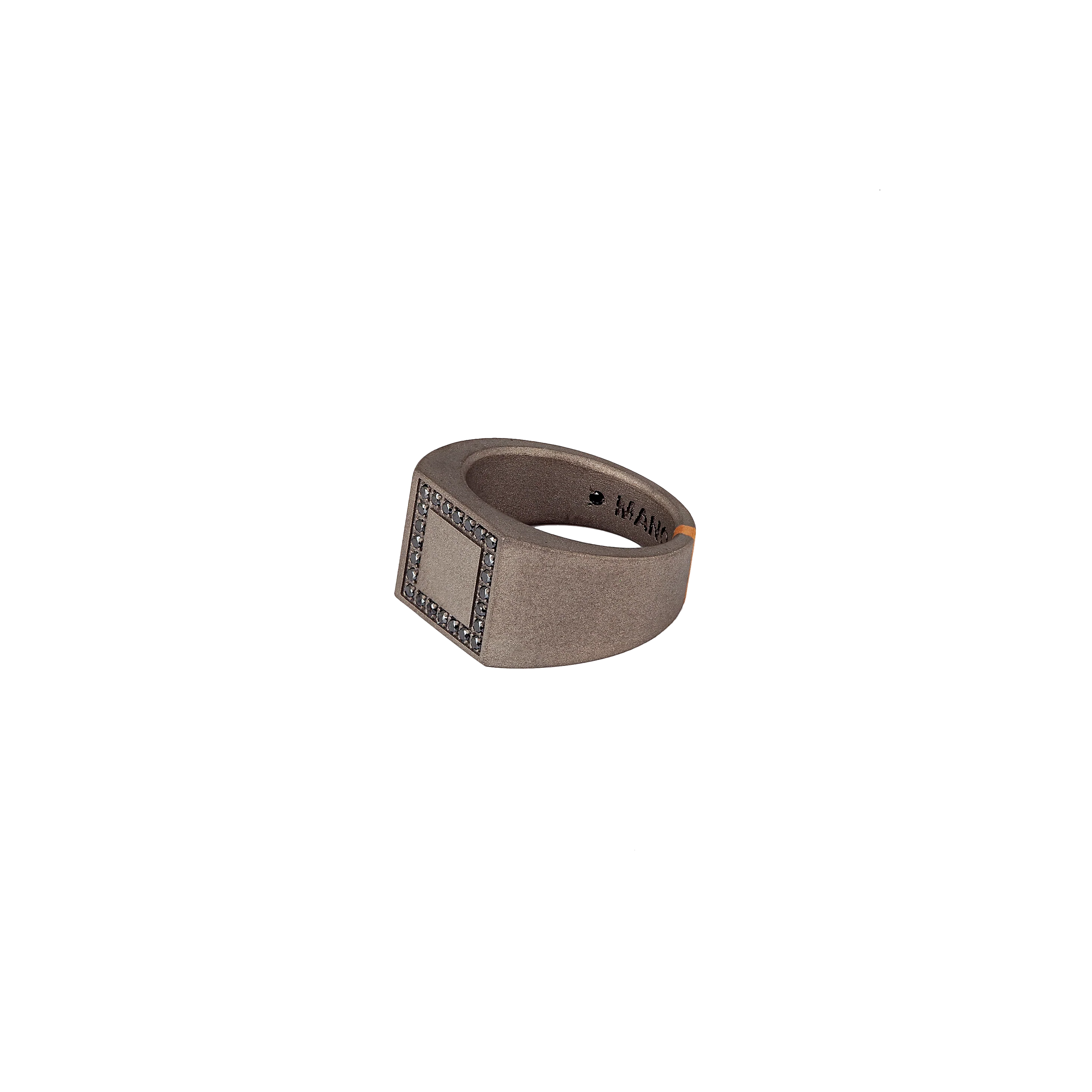 Anello uomo in titanio, diamanti black e oro rosso 18K. Alla tradizionale forma dell'anello da uomo si aggiungono particolari preziosi ed innovativi che contraddistinguono il marchio MANO|J.. La parte superiore dell'anello è costituita da un contorno di diamanti black da 1 punto. Ad impreziosire il gioiello, un riportino in oro rosso. La leggerezza del titanio dona massima indossabilità e comfort.