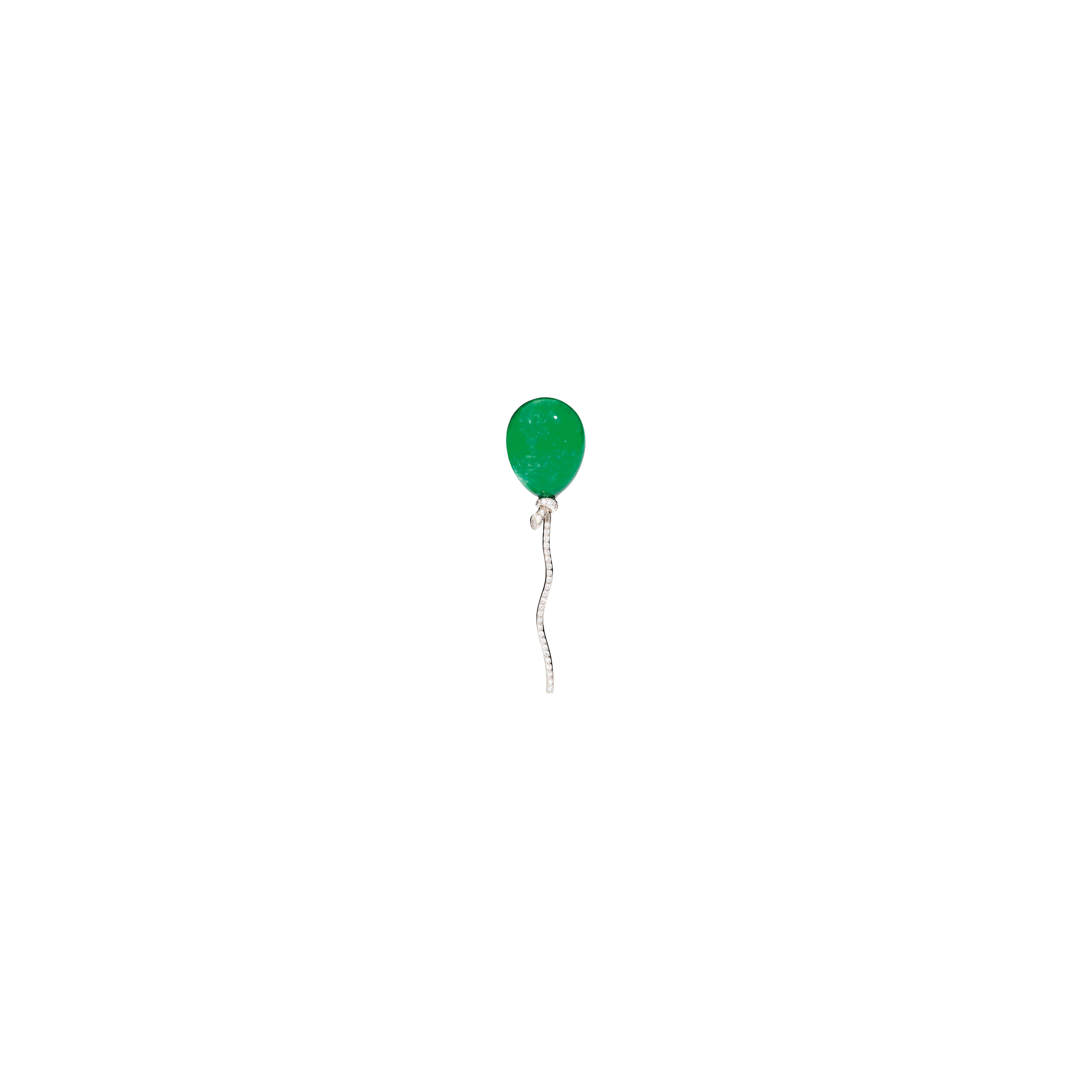 Gioioso, raffinato e anticonformista, il mono orecchino palloncino riproduce fedelmente l'omonima spilla, ideata nel 1984 e fra i best seller di Vhernier. Realizzato in oro bianco 18K, con il cordino in meravigliosi diamanti, abbina una bellissima giada al cristallo di rocca per dar vita a una delle famose trasparenze di Vhernier. Modello a clip.