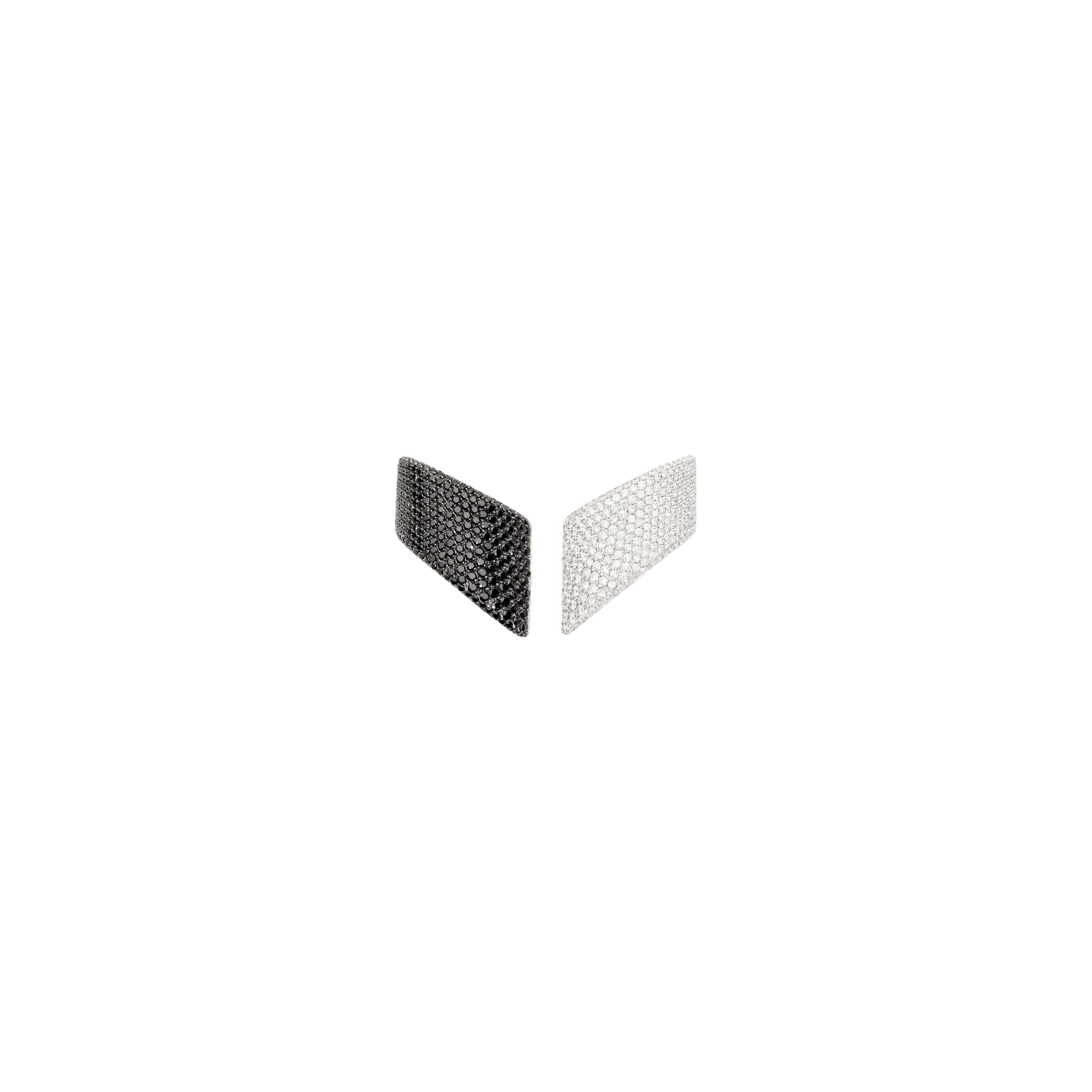 Dalle linee pulite ed essenziali, con una luce magnifica, questa versione dei Vague, gli orecchini icona di Vhernier sono qui proposti in una versione dall'eleganza anticonformista: entrambi in oro bianco 18K, uno è ricoperto da bellissimi diamanti bianchi, l'altro da meravigliosi diamanti neri naturali. Modello a clip