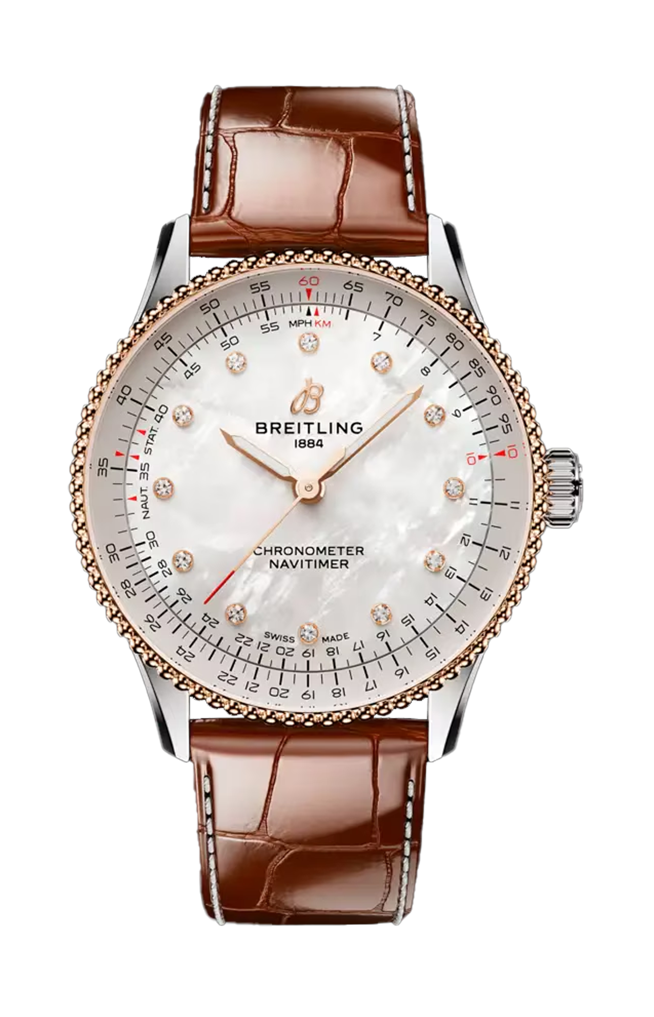L’icona di Breitling: un eccellente compagno di viaggio. Il Navitimer è uno degli orologi più riconoscibili mai realizzati. È sulla lista dei collezionisti come uno degli orologi più famosi al mondo. Nato nel 1952 come uno strumento per piloti, questo segnatempo assume ora un significato più profondo per chiunque ne abbia posseduto uno nel corso della propria vita. La nostra icona ora è disponibile nelle dimensioni di 36 e 32 mm per le donne e gli uomini che amano l’estetica di un orologio dal diametro inferiore. Mentre il Navitimer 36 mm presenta la lunetta a perline e l’iconico regolo calcolatore circolare che gli conferisce quell’aspetto inconfondibile, la splendida variante da 32 mm rinuncia al regolo calcolatore a favore di un quadrante dal design semplificato adatto al suo diametro sottile. Ma questi modelli hanno molto di più da offrire oltre alle loro nuove misure. Tonalità pastello, madreperla e preziosi materiali tracciabili si combinano con raffinate finiture per infondere ai segnatempo un fascino da gioielleria, aggiungendo un’eleganza versatile al leggendario orologio da navigazione, pronto ad affrontare qualsiasi viaggio.