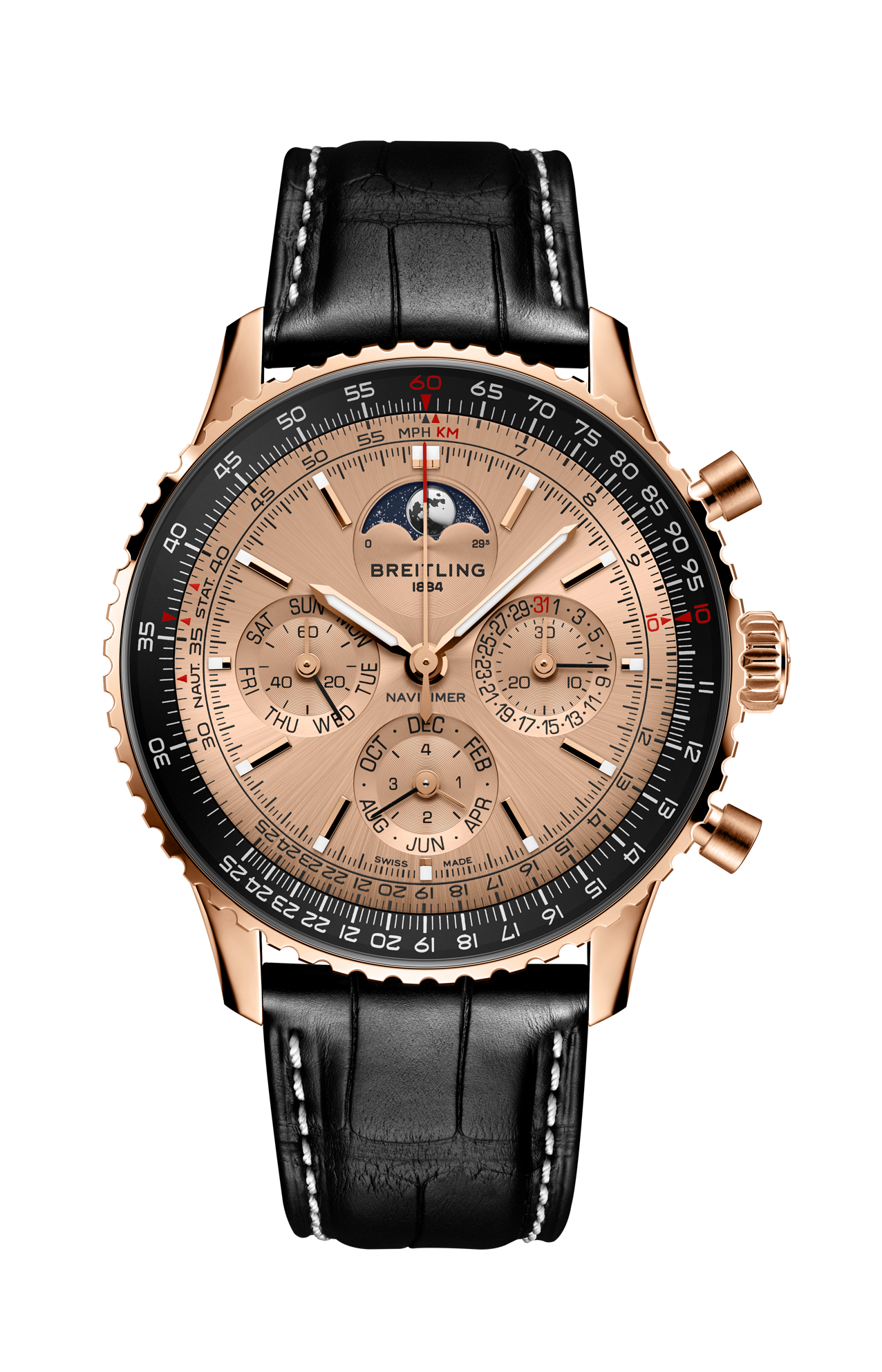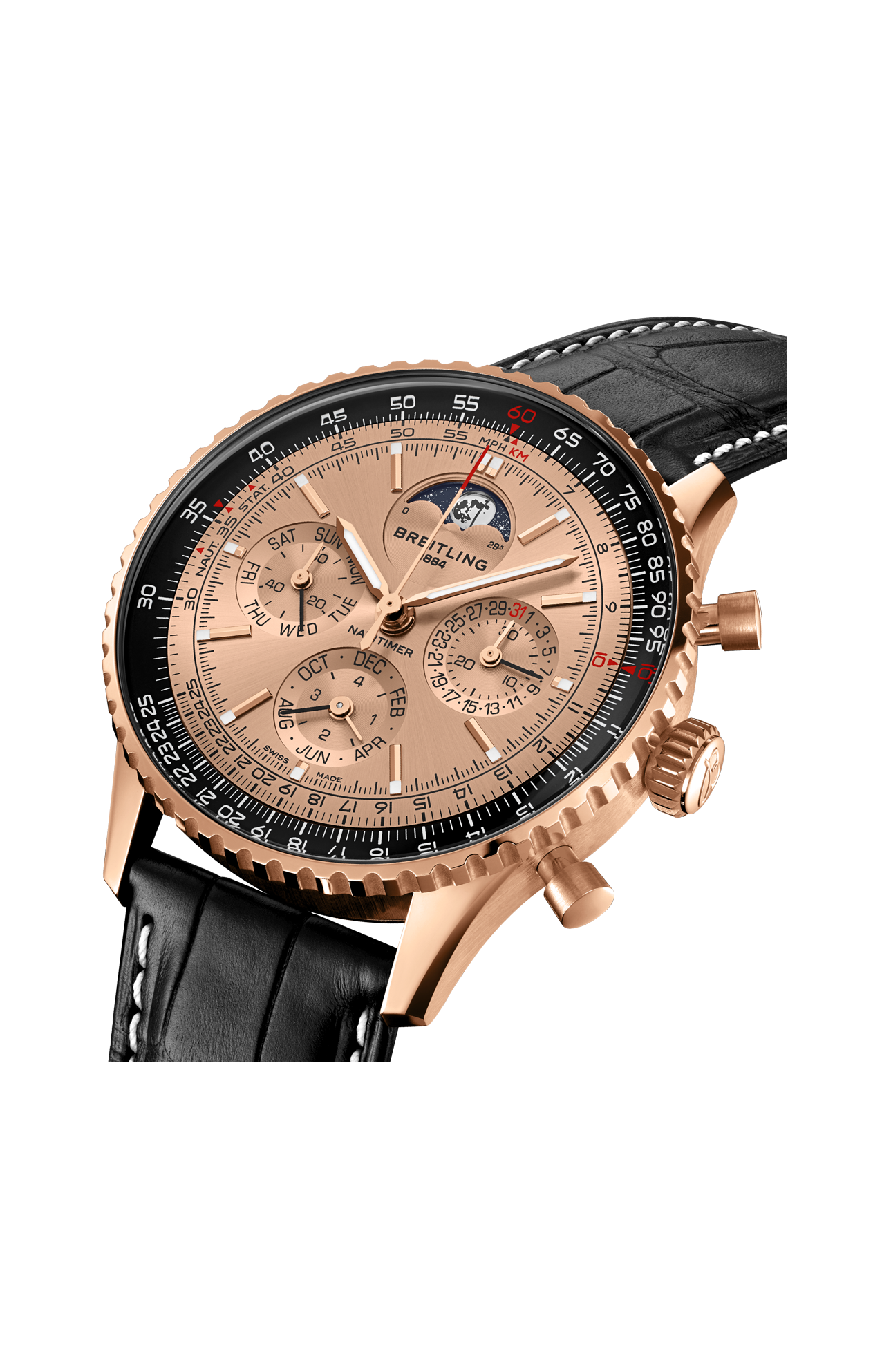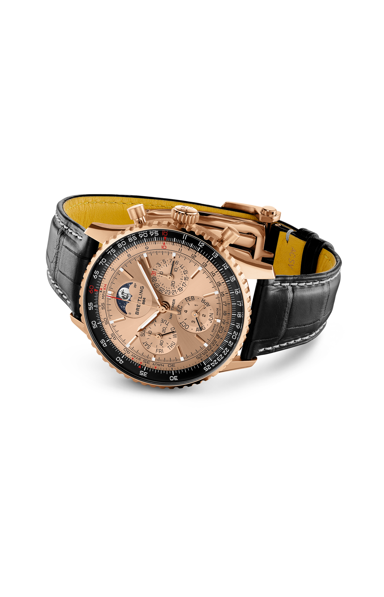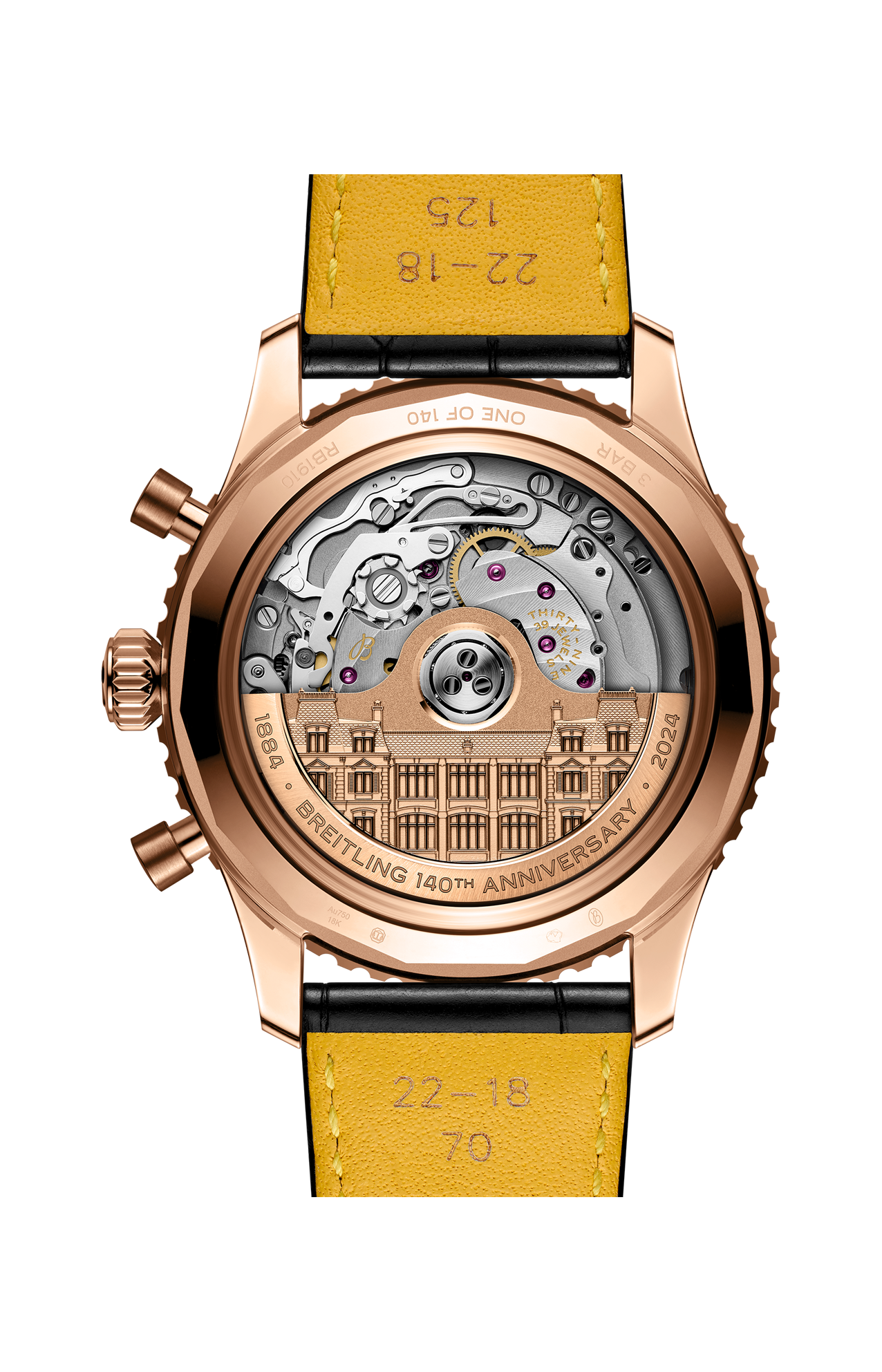 Fondata nel 1884, Breitling festeggia il suo anniversario con una novità che va ad aggiungersi all’elenco di successi pionieristici: il calibro B19, il primo movimento cronografico del brand con calendario perpetuo. Il nuovo calibro esordisce all’interno di tre modelli in edizione limitata per il 140° anniversario, simboli di Breitling: il Premier, il Navitimer e il Chronomat. Il Premier è entrato in scena nel 1943 in qualità di orologio che ha introdotto il cronografo nella sfera sociale, al di fuori della cabina di pilotaggio, rendendolo un simbolo di «gusto impeccabile», a detta del fondatore Willy Breitling. Il Navitimer è stato il primo orologio per piloti a combinare un cronografo con il regolo calcolatore circolare da polso del brand. Sviluppato originariamente nel 1952 per la Aircraft Owners and Pilots Association (AOPA), il Navitimer ha conquistato rapidamente un pubblico più ampio, che comprendeva grandi atleti, musicisti e astronauti: nel 1962, è stato anche il primo orologio da polso svizzero ad andare nello spazio. Il Chronomat è stato presentato per la prima volta nel 1983 come orologio ufficiale delle Frecce Tricolori, la pattuglia acrobatica dell’Aeronautica Italiana. Il successo del suo design ha portato, un anno dopo, a una distribuzione su larga scala. In un’epoca che vedeva come protagonista il quarzo, il Chronomat ha contribuito a riportare in auge i cronografi meccanici. Tutti e tre gli emblematici modelli sono animati dal movimento di manifattura B19, che per l’occasione sfoggia un rotore in oro massiccio impreziosito da un’incisione della storica manifattura Montbrillant di Breitling, a La Chaux-de-Fonds, in Svizzera. Montbrillant era più di una fabbrica: oltre ad essere stata la manifattura dell’azienda per oltre 80 anni, l’ala ovest è stata ha ospitato la famiglia Breitling per tre generazioni. Ogni edizione dedicata all’anniversario è limitata a 140 esemplari ed è corredata da un sontuoso cofanetto in legno rivestito in pelle scamosciata che può ospitare fino a tre orologi.