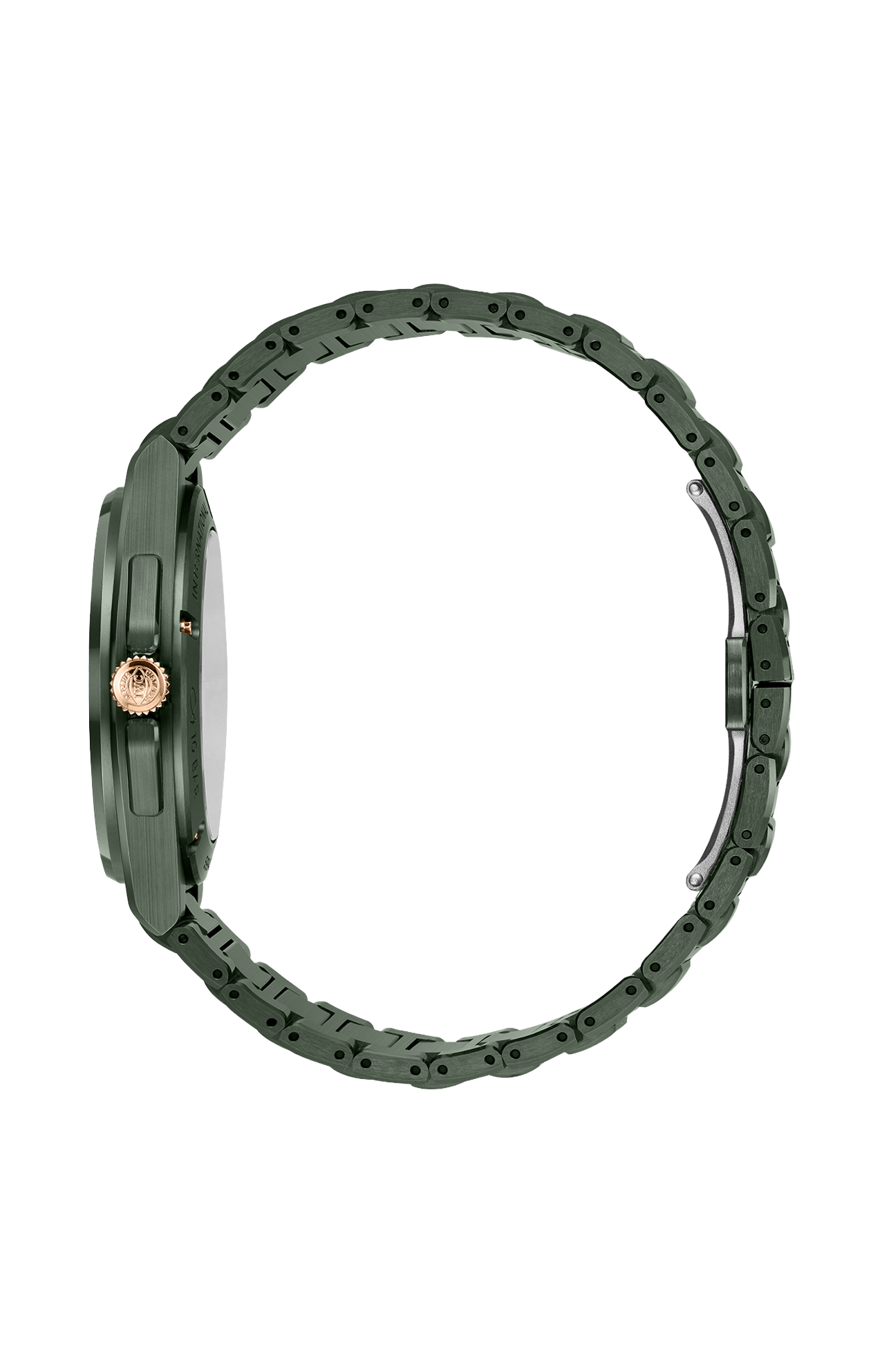 L’Ingenieur Automatic 42 combina il design con bracciale integrato derivato da Gérald Genta a una sorprendente interpretazione in ceramica verde oliva scuro.
