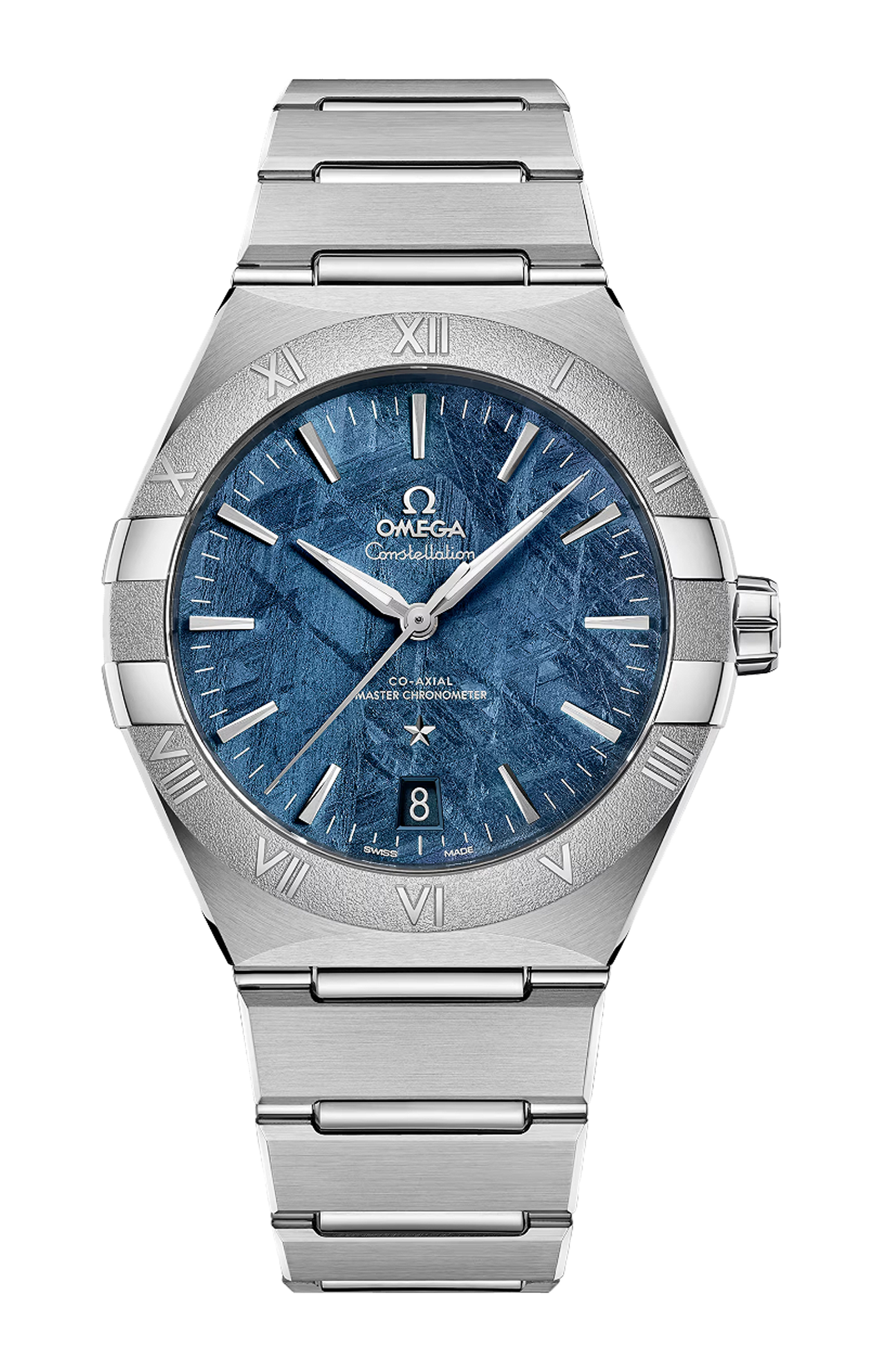 Il meraviglioso quadrante è realizzato a partire da un vero frammento di meteorite di ferro, sottoposto a trattamento in PVD blu. Il motivo naturale interno al meteorite è unico per ogni modello, elemento che ne garantisce l'unicità. Completano il design dell’orologio un datario a finestrella a ore 6 e gli indici, le lancette e la stella Constellation in oro bianco Moonshine™ 18K.