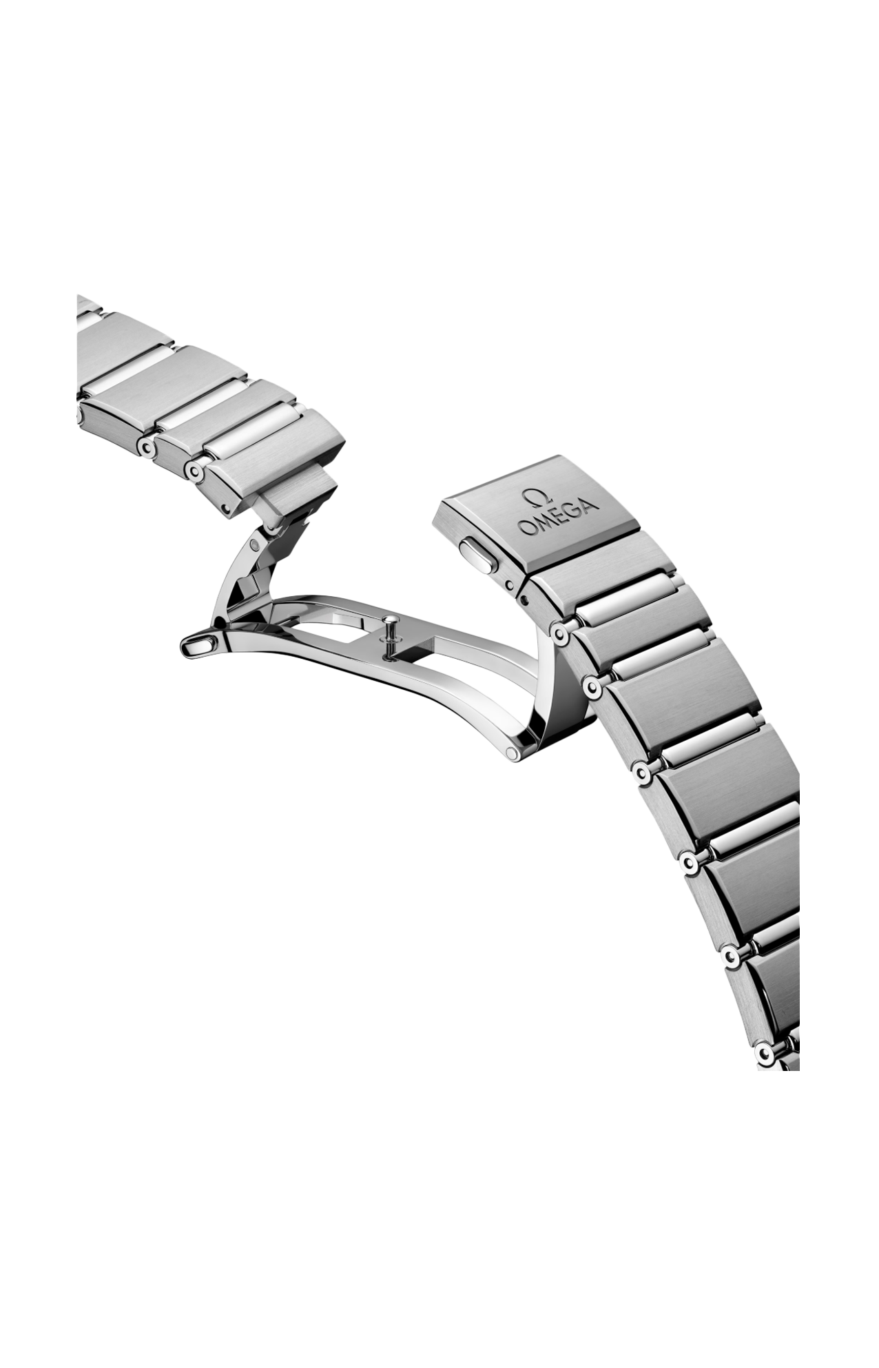 L’orologio presenta una cassa da 41 mm corredata da un bracciale “Mono Rang” in acciaio inossidabile e integra molte delle caratteristiche distintive della linea Constellation, come le griffe lucide, le sfaccettature a mezzaluna e i numeri romani ottenuti mediante ablazione al laser in rilievo positivo sulla lunetta in titanio grado 5.