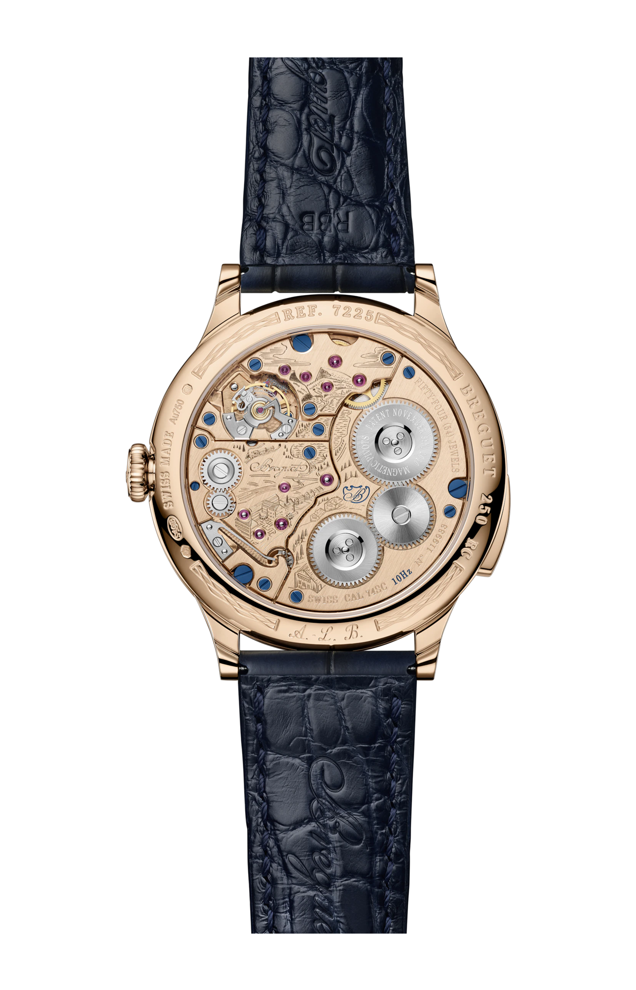 Il Breguet Classique Régulateur à Pivot Magnétique 7225BH/0H/9V6 è un segnatempo di alta orologeria che unisce innovazione tecnica, precisione assoluta e l’eleganza senza tempo tipica della Maison Breguet. La cassa rotonda in oro Breguet 18 K esprime un’estetica raffinata e classica, con finiture perfette che valorizzano la silhouette essenziale e armoniosa della collezione Classique. Il quadrante è caratterizzato da una disposizione “régulateur” unica nel suo genere: ore, minuti e piccoli secondi sono disposti su assi separati, con i minuti al centro, le ore in un sottocontatore e i piccoli secondi in un altro, per una leggibilità estremamente chiara e un design di grande equilibrio visivo. Indici e numeri Breguet elegantemente curvati accompagnano le lancette sottili in acciaio azzurrato, espressione del raffinato savoir-faire estetico del marchio.