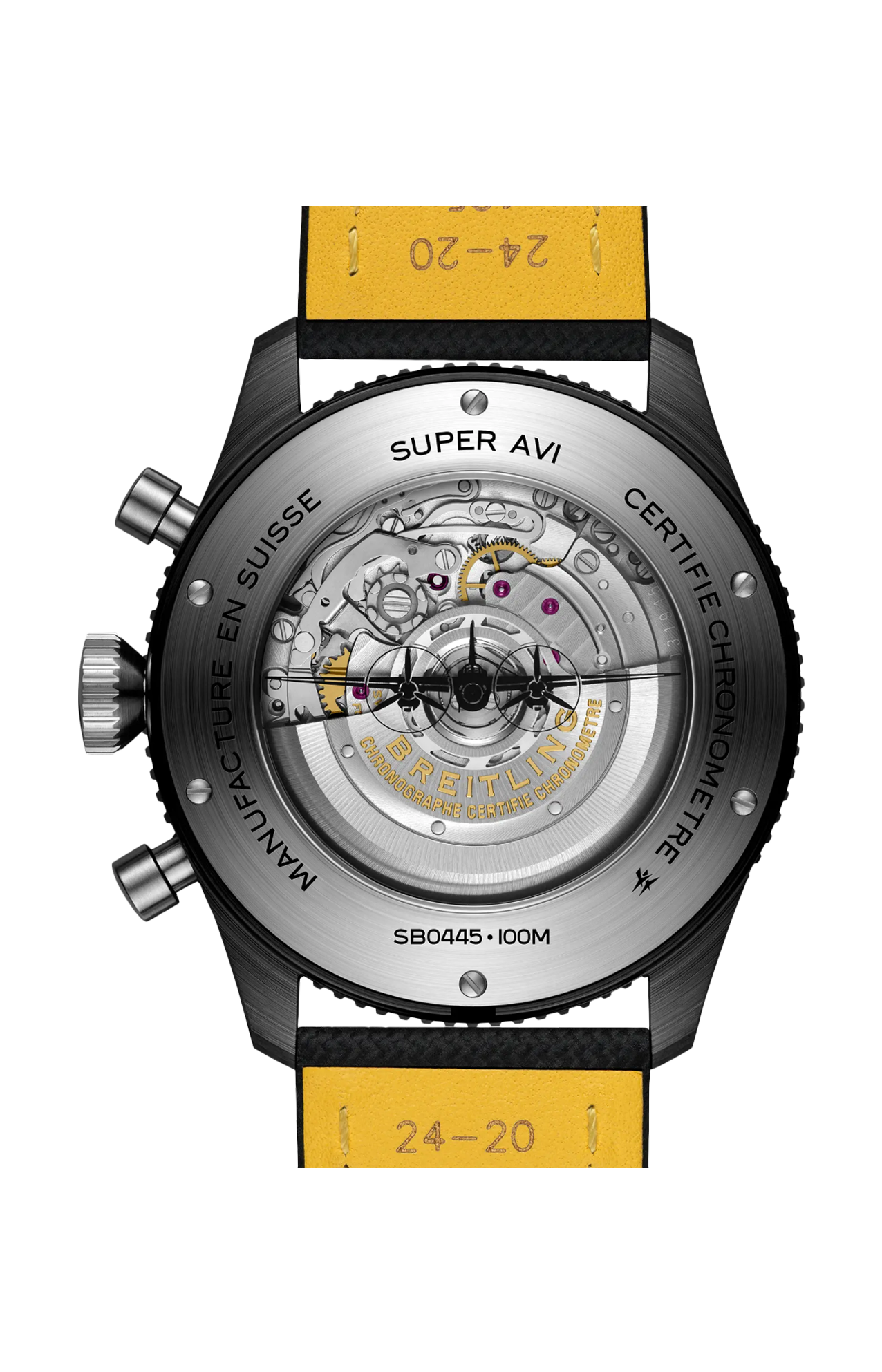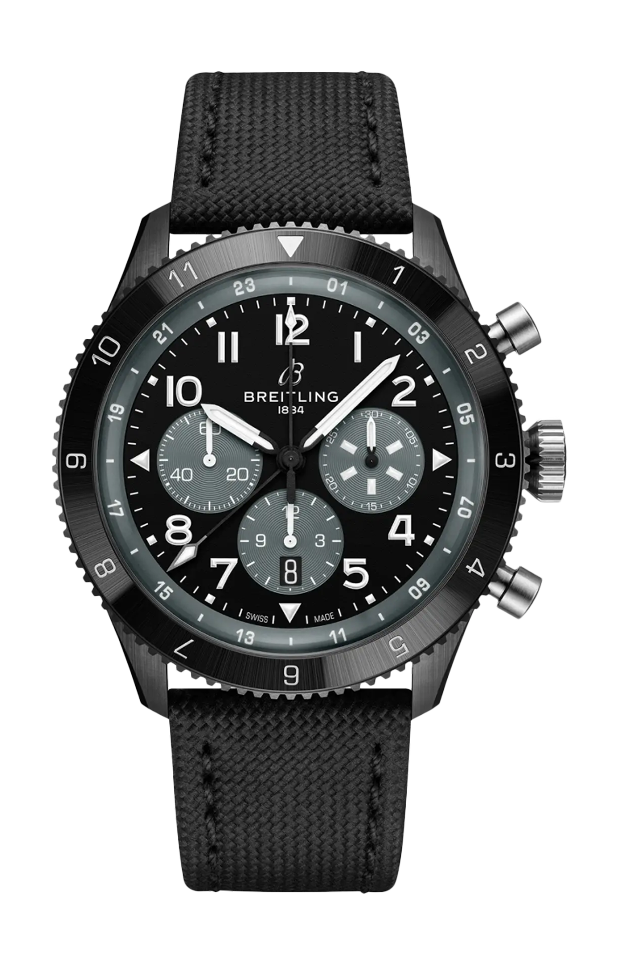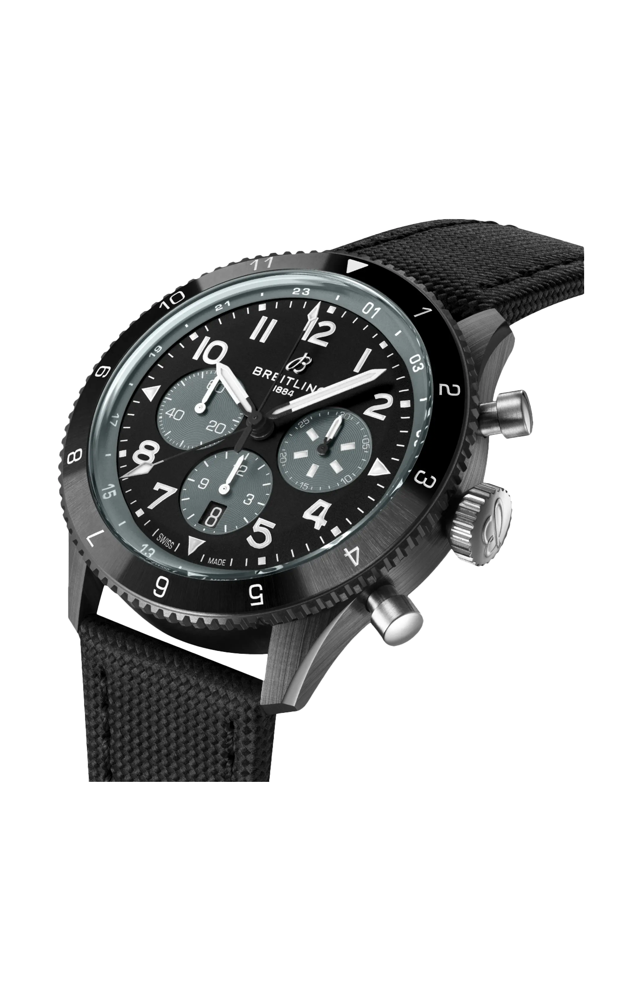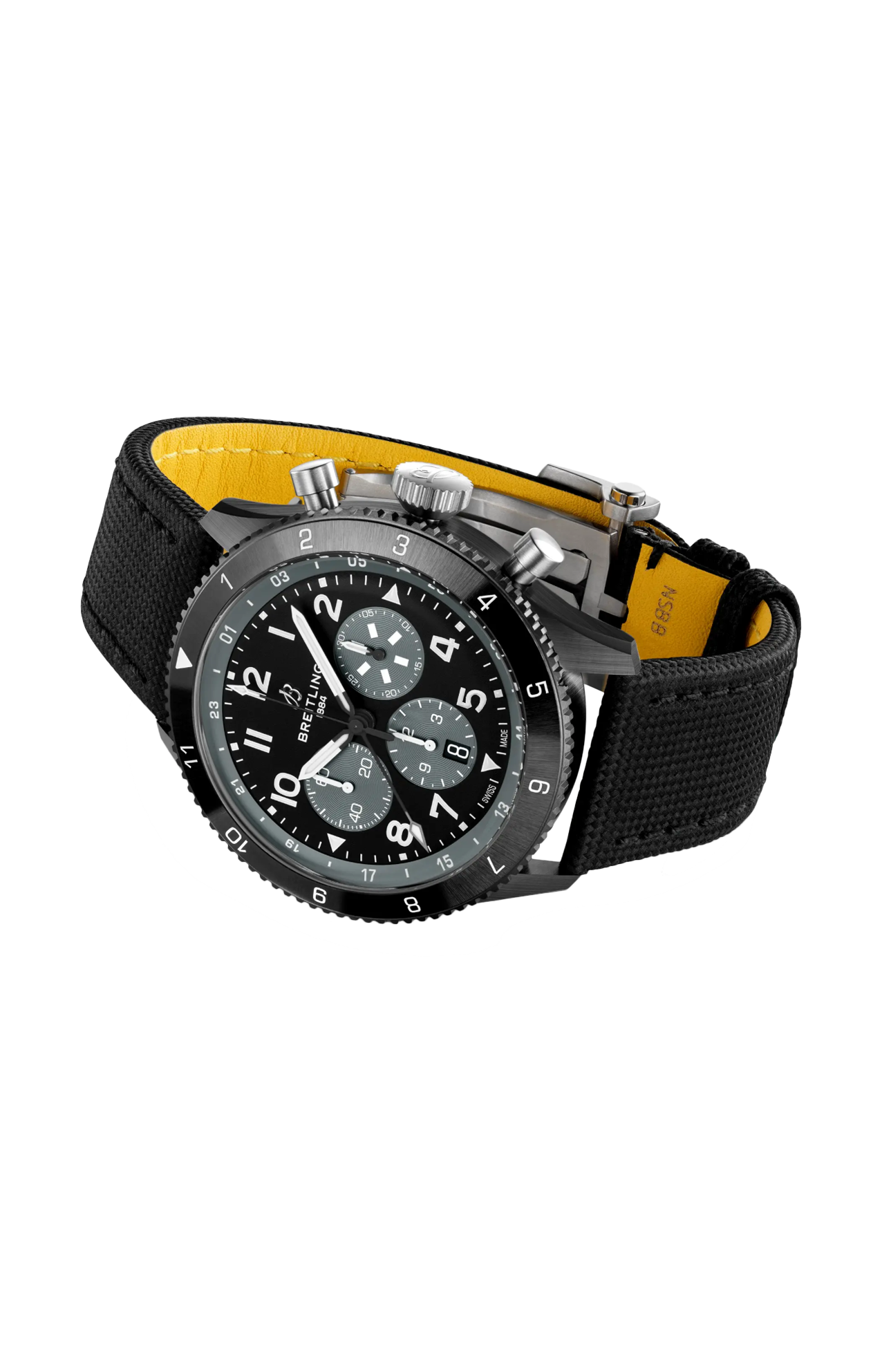 Dai coraggiosi decolli, i primi nella storia, fino alla nascita dei viaggi aerei commerciali, la storia di Breitling è inscindibile da quella del volo. Negli anni '30, l’Huit Aviation Department di Breitling diventa famoso grazie all’invenzione di orologi di precisione per la cabina di pilotaggio dedicati all’aeronautica, un settore in piena espansione. Vent’anni dopo, Breitling presenta un altro strumento per il volo, questa volta da indossare al polso: il Ref. 765 AVI. Questo orologio pionieristico per piloti ha fornito la base tecnica per l’attuale Super AVI, una collezione ispirata allo spirito vigoroso dei primi celebri aeroplani. Il Super AVI Mosquito rende omaggio a una di queste leggende. In un’epoca in cui una carenza di alluminio e acciaio era comune, gli ingegneri che hanno progettato il De Havilland Mosquito decidono di usare un materiale ancora abbondante: il legno. The Wooden Wonder lascia tutti a bocca aperta quando supera le sue controparti in metallo, diventando uno degli aerei più veloci a essere costruiti tra il 1940 e il 1950. La sua elevatissima maneggevolezza lo rende estremamente versatile: da bombardiere leggero a strumento impiegato per trasporti o foto aeree di guerra. Il Super AVI Mosquito si ispira al Night Fighter 2, un aereo a due posti completamente nero progettato per sfrecciare furtivamente nel cielo notturno. Essendo un vero orologio da pilota progettato per resistere alle asprezze della cabina di pilotaggio dell’epoca, il Super AVI Mosquito presenta grandi numeri arabi facilmente leggibili su quadrante e lunetta. La cassa in ceramica completamente nera contrasta nettamente con i pulsanti, la corona, il fondocassa e la fibbia in titanio. La lunetta zigrinata fornisce una presa ottimale anche per le mani di un pilota che indossa i guanti. Il cinturino in pelle militare è un rimando ai rivestimenti delle cabine di pilotaggio classiche. Piloti e viaggiatori apprezzeranno la possibilità di visualizzare un secondo fuso orario grazie all’indicatore delle 24 ore sulla lunetta interna e alla lancetta GMT con la sua punta bianca. Il meccanismo del movimento del Super AVI è il calibro di manifattura Breitling B04 certificato COSC che offre circa 70 ore di riserva di carica.