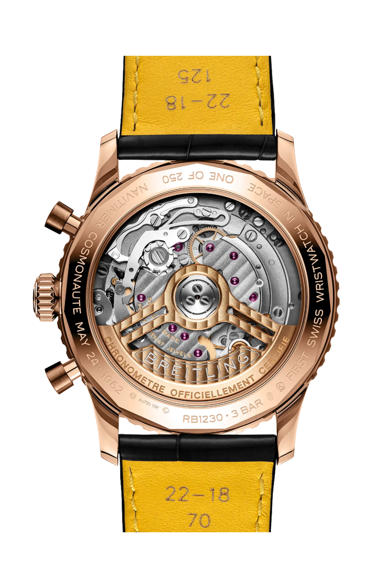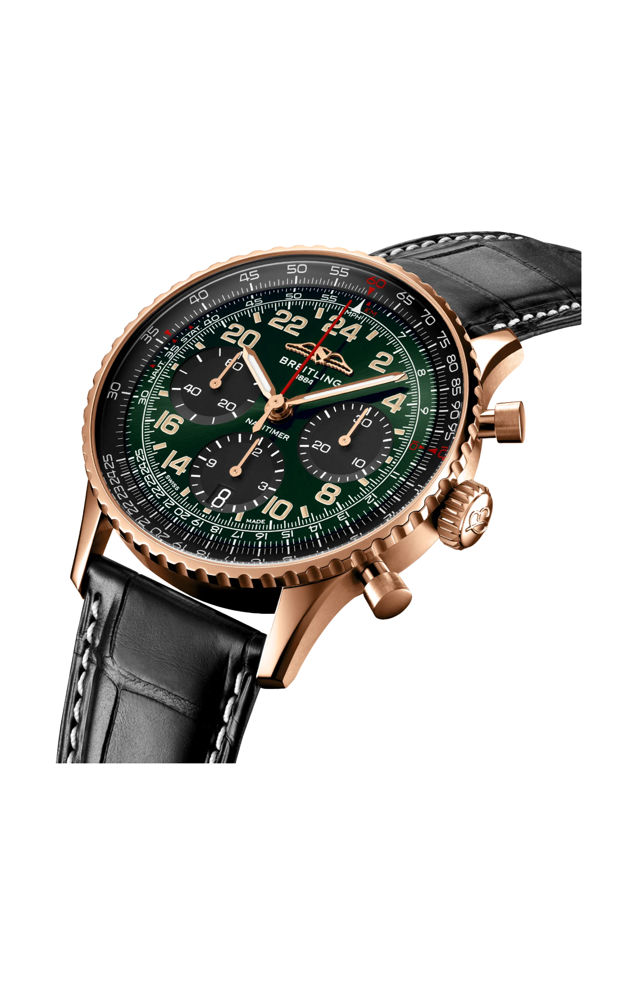 L’iconico cronografo da pilota di Breitling: perfetto per i viaggi spaziali. Già nei primi anni ’60, il Breitling Navitimer, con il suo regolo calcolatore circolare per effettuare i calcoli in volo, si era affermato come indiscusso orologio da piloti. Ma, nell’era della corsa allo spazio, era in atto un’altra competizione, quella tra gli orologiai che gareggiavano per essere i primi ad arrivare sui polsi degli astronauti. Ancora una volta, Breitling mostrò il proprio valore diventando ufficialmente il primo cronografo da polso svizzero ad andare nello spazio: il 24 maggio 1962, quando Scott Carpenter decollò a bordo della navicella Mercury-Atlas 7 indossando il Navitimer Cosmonaut. L’orologio era stata una sua personale richiesta, una variazione dell’iconico Navitimer con l’aggiunta di un quadrante da 24 ore per distinguere in orbita il giorno dalla notte. La Mercury-Atlas 7 circum navigò tre volte la Terra prima di ammarare nell’Atlantico, scrivendo la storia dell’aeronautica, e dell’orologeria. Il nostro omaggio al Cosmonaut, limitato a 250 esemplari, modernizza l’estetica dell’originale con un quadrante verde e una cassa in oro rosso 18 carati. E questa volta la principale modifica non è pensata per l’assenza di gravità, ma per la vita di tutti i giorni: un movimento cronografico a ricarica automatica, il calibro di manifattura Breitling B12. Come ulteriore tributo, il fondello riporta l’incisione della data della missione di Carpenter, la limitazione a 250 esemplari e la frase «First Swiss Wristwatch in Space» (primo orologio da polso svizzero nello spazio).