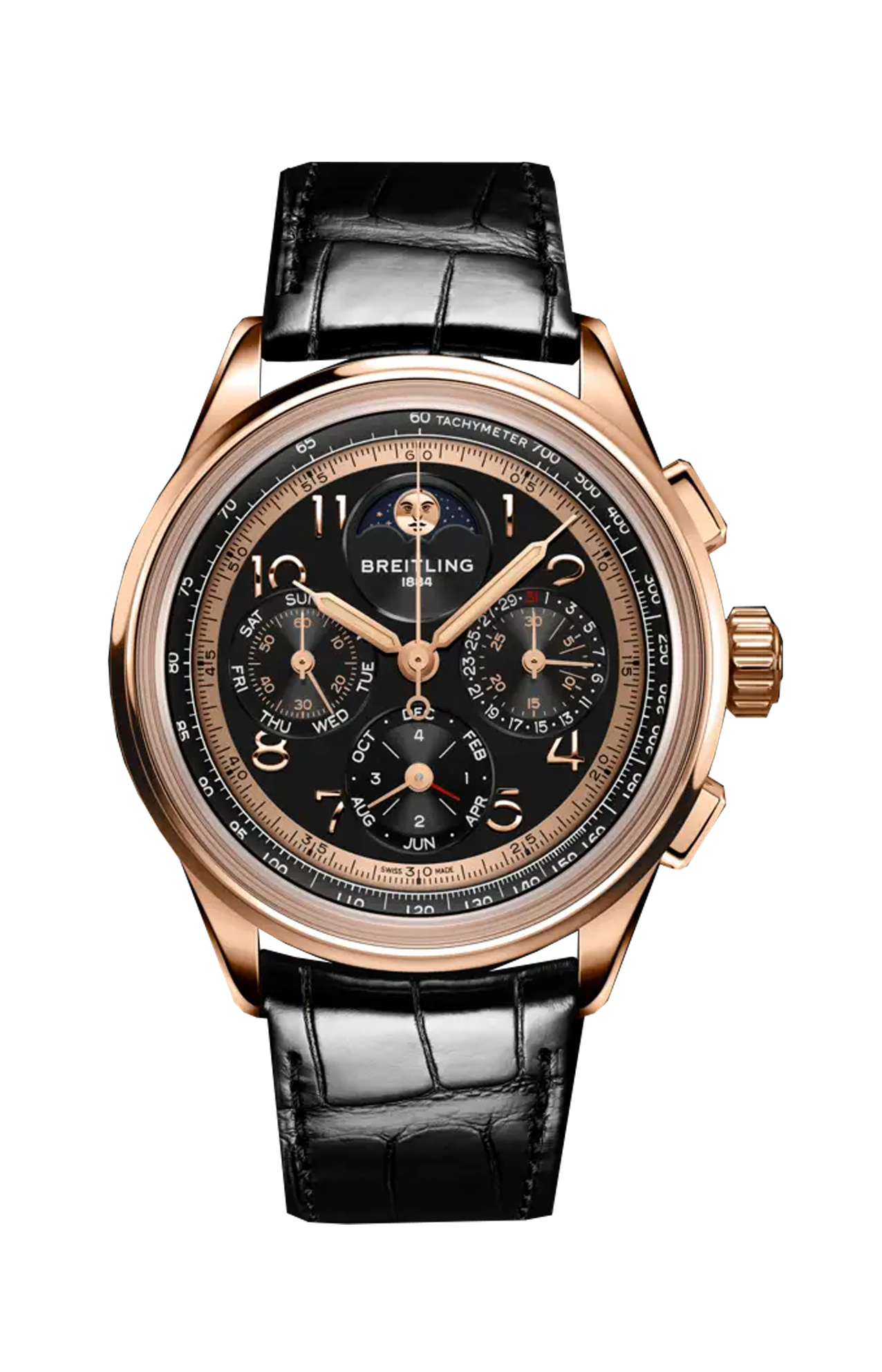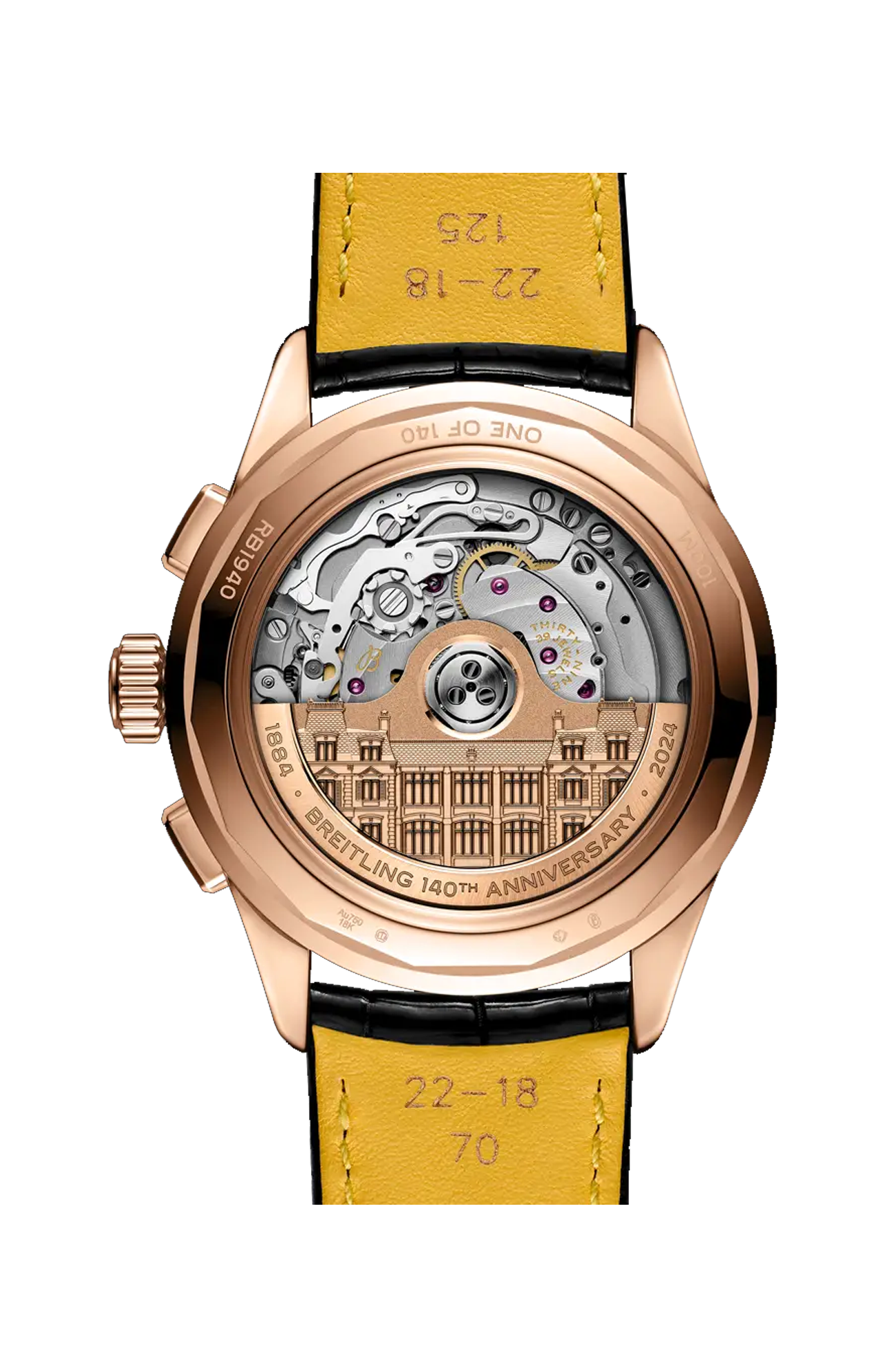Fondata nel 1884, Breitling festeggia il suo anniversario con una novità che va ad aggiungersi all’elenco di successi pionieristici: il calibro B19, il primo movimento cronografico del brand con calendario perpetuo. Il nuovo calibro esordisce all’interno di tre modelli in edizione limitata per il 140° anniversario, simboli di Breitling: il Premier, il Navitimer e il Chronomat. Il Premier è entrato in scena nel 1943 in qualità di orologio che ha introdotto il cronografo nella sfera sociale, al di fuori della cabina di pilotaggio, rendendolo un simbolo di «gusto impeccabile», a detta del fondatore Willy Breitling. Il Navitimer è stato il primo orologio per piloti a combinare un cronografo con il regolo calcolatore circolare da polso del brand. Sviluppato originariamente nel 1952 per la Aircraft Owners and Pilots Association (AOPA), il Navitimer ha conquistato rapidamente un pubblico più ampio, che comprendeva grandi atleti, musicisti e astronauti: nel 1962, è stato anche il primo orologio da polso svizzero ad andare nello spazio. Il Chronomat è stato presentato per la prima volta nel 1983 come orologio ufficiale delle Frecce Tricolori, la pattuglia acrobatica dell’Aeronautica Italiana. Il successo del suo design ha portato, un anno dopo, a una distribuzione su larga scala. In un’epoca che vedeva come protagonista il quarzo, il Chronomat ha contribuito a riportare in auge i cronografi meccanici. Tutti e tre gli emblematici modelli sono animati dal movimento di manifattura B19, che per l’occasione sfoggia un rotore in oro massiccio impreziosito da un’incisione della storica manifattura Montbrillant di Breitling, a La Chaux-de-Fonds, in Svizzera. Montbrillant era più di una fabbrica: oltre ad essere stata la manifattura dell’azienda per oltre 80 anni, l’ala ovest è stata ha ospitato la famiglia Breitling per tre generazioni. Ogni edizione dedicata all’anniversario è limitata a 140 esemplari ed è corredata da un sontuoso cofanetto in legno rivestito in pelle scamosciata che può ospitare fino a tre orologi.
