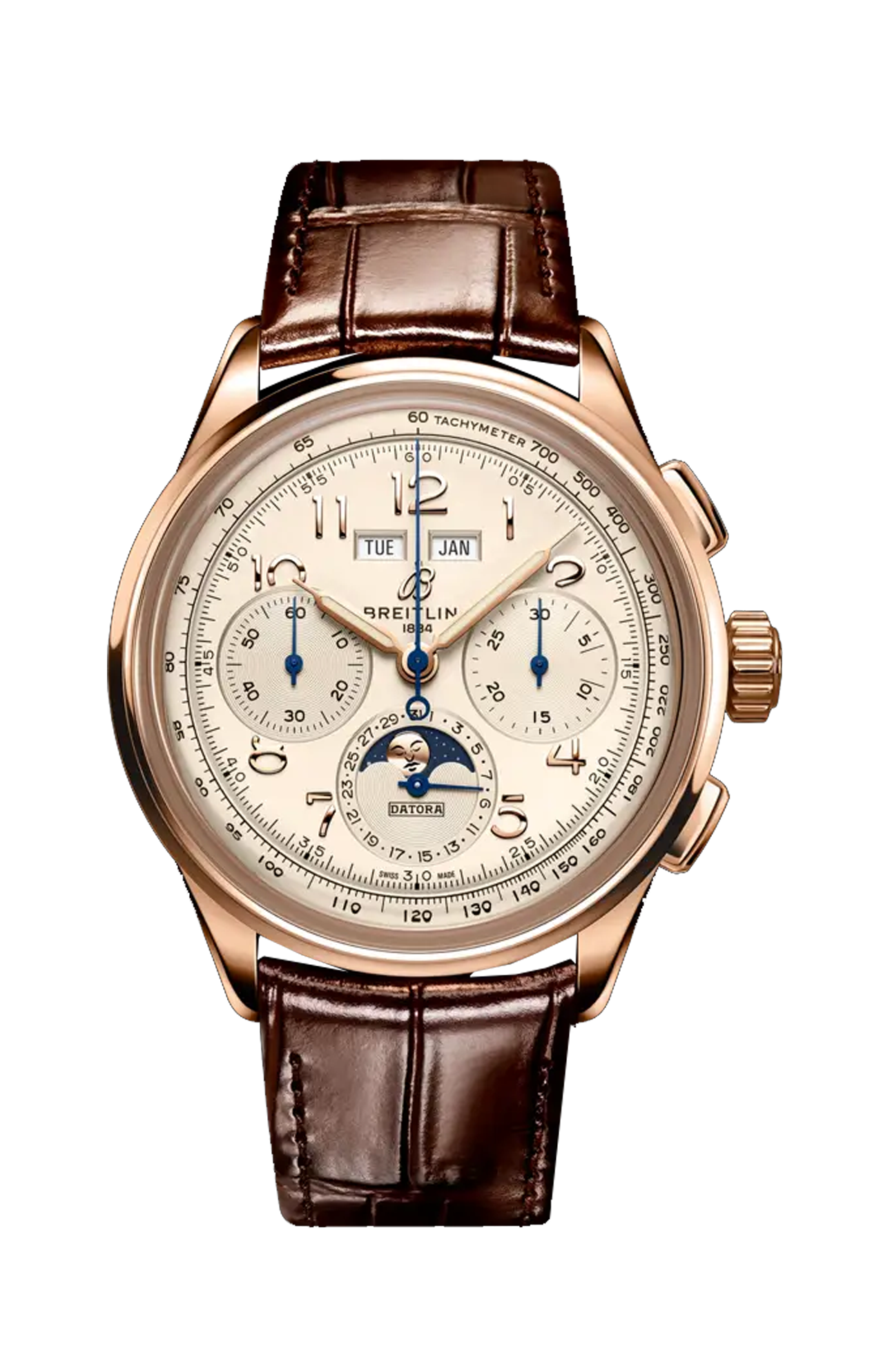 Fondata nel 1884, Breitling festeggia il suo anniversario con una novità che va ad aggiungersi all’elenco di successi pionieristici: il calibro B19, il primo movimento cronografico del brand con calendario perpetuo. Il nuovo calibro esordisce all’interno di tre modelli in edizione limitata per il 140° anniversario, simboli di Breitling: il Premier, il Navitimer e il Chronomat. Il Premier è entrato in scena nel 1943 in qualità di orologio che ha introdotto il cronografo nella sfera sociale, al di fuori della cabina di pilotaggio, rendendolo un simbolo di «gusto impeccabile», a detta del fondatore Willy Breitling. Il Navitimer è stato il primo orologio per piloti a combinare un cronografo con il regolo calcolatore circolare da polso del brand. Sviluppato originariamente nel 1952 per la Aircraft Owners and Pilots Association (AOPA), il Navitimer ha conquistato rapidamente un pubblico più ampio, che comprendeva grandi atleti, musicisti e astronauti: nel 1962, è stato anche il primo orologio da polso svizzero ad andare nello spazio. Il Chronomat è stato presentato per la prima volta nel 1983 come orologio ufficiale delle Frecce Tricolori, la pattuglia acrobatica dell’Aeronautica Italiana. Il successo del suo design ha portato, un anno dopo, a una distribuzione su larga scala. In un’epoca che vedeva come protagonista il quarzo, il Chronomat ha contribuito a riportare in auge i cronografi meccanici. Tutti e tre gli emblematici modelli sono animati dal movimento di manifattura B19, che per l’occasione sfoggia un rotore in oro massiccio impreziosito da un’incisione della storica manifattura Montbrillant di Breitling, a La Chaux-de-Fonds, in Svizzera. Montbrillant era più di una fabbrica: oltre ad essere stata la manifattura dell’azienda per oltre 80 anni, l’ala ovest è stata ha ospitato la famiglia Breitling per tre generazioni. Ogni edizione dedicata all’anniversario è limitata a 140 esemplari ed è corredata da un sontuoso cofanetto in legno rivestito in pelle scamosciata che può ospitare fino a tre orologi.