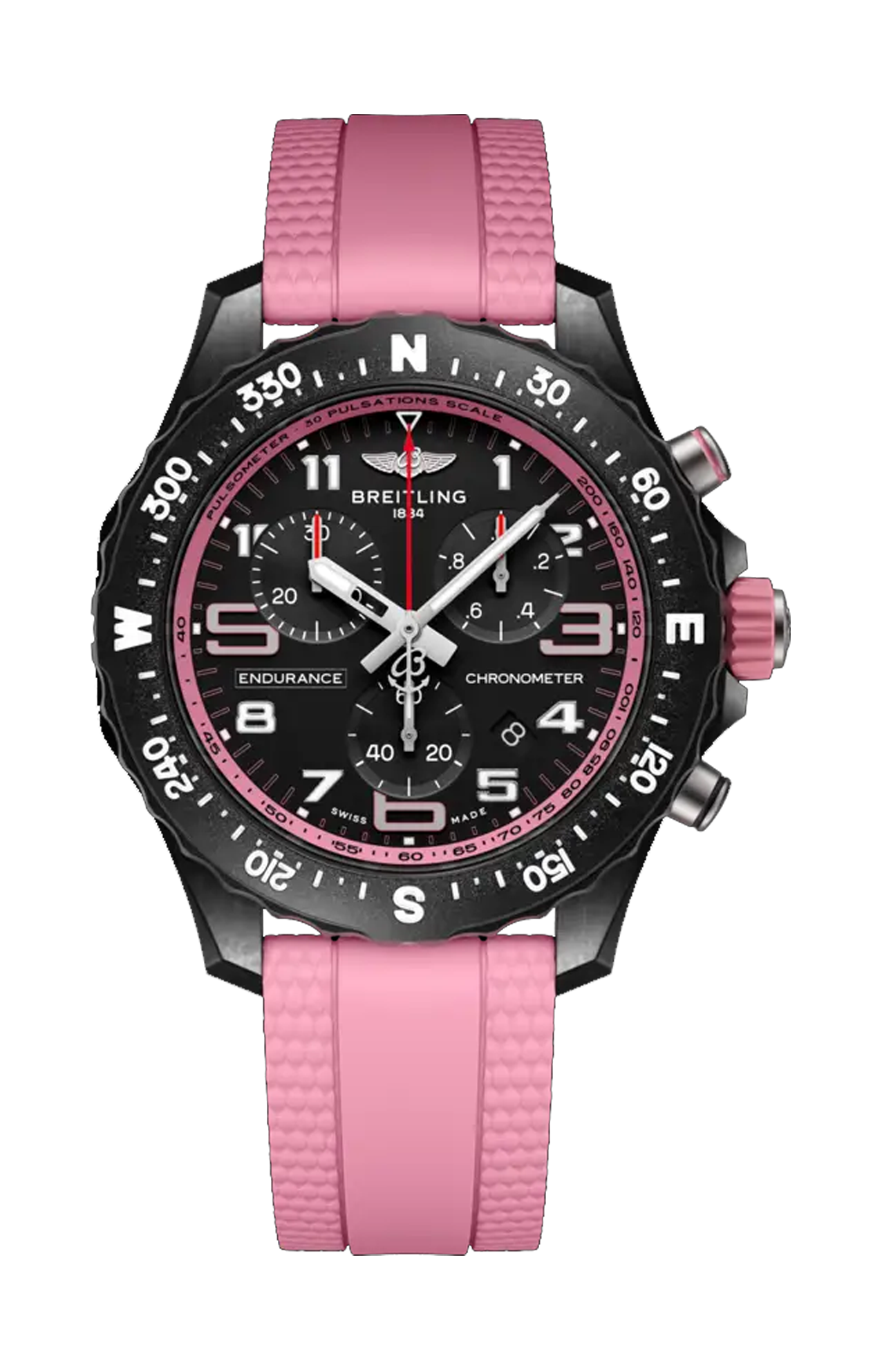 Progettato per essere sia un orologio leggero per gli atleti che un cronografo sportivo casual per tutti i giorni, l’Endurance Pro coniuga perfettamente tecnologia innovativa con un design grintoso per produrre un orologio sportivo casual per eccellenza. Conceito per uomini e donne la cui vita attiva unisce una mentalità professionale a uno stile di vita sportivo, l’Endurance Pro è all’altezza delle sfide poste da un allenamento rigoroso ma anche piuttosto elegante per l’uso quotidiano. L’Endurance Pro è caratterizzato da una cassa ultraleggera in Breitlight®, un materiale robusto 3,3 volte più leggero del titanio e 5,8 volte più leggero dell’acciaio inossidabile. Amagnetico, termicamente stabile e ipoallergenico, Breitlight® è altamente resistente ai graffi, alla trazione e alla corrosione. Al tatto è più caldo rispetto al metallo e ha un effetto leggermente strutturato che accentua l’originalità del design. Un’esclusiva di Breitling, il materiale è 100% Swiss Made. Con diametro da 44 mm o 38 mm, l’Endurance Pro è disponibile per gli atleti con tantissimi quadranti colorati e cinturini di caucciù dotati di fibbia ad ardiglione in Breitlight®. I due formati sono animati rispettivamente dai calibri Breitling 82 e 83, entrambi cronografi SuperQuartz™ certificati COSC che offrono una straordinaria precisione.