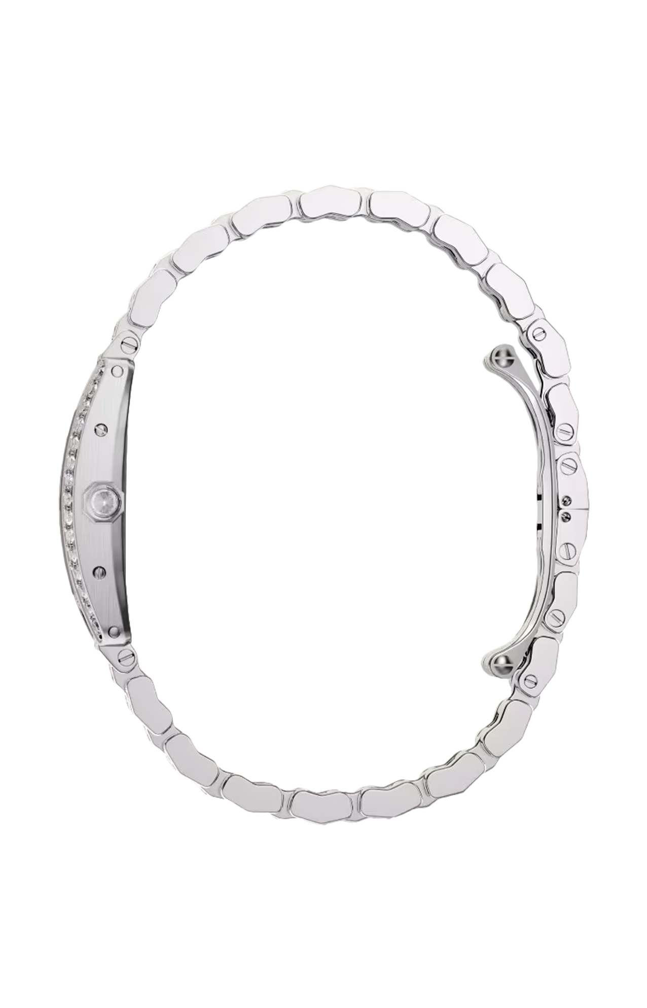 Disegnato da Louis Cartier nel 1917, l’orologio Tank è un’icona orologiera moderna. Un orologio-bracciale la cui identità è definita dalla scelta di un design essenziale, che abbina geometria e proporzioni precise. Immediatamente riconoscibile e sempre al passo con i tempi, il Tank è stato reinterpretrato per oltre un secolo in una serie di varianti che rimangono fedeli allo spirito del design originale, come dimostrano il Tank Cintrée, il Tank Chinoise, il Tank Américaine e il Tank Française. Orologio Tank Américaine, modello mini, movimento al quarzo. Cassa in oro bianco 750/1000 ornata di 40 diamanti taglio brillante (0,50 carati). Dimensioni della cassa: 28 x 15,2 mm, spessore: 6,5 mm. Quadrante argentato con finitura satinata ed effetto soleil. Corona ottagonale in oro bianco 750/1000 ornata di un diamante con padiglione invertito. Lancette a forma di gladio d’acciaio azzurrato. Bracciale in oro bianco 750/1000 semi-ornato di 168 diamanti pavé brillante (0,83 carati). Impermeabile fino a 30 metri.
