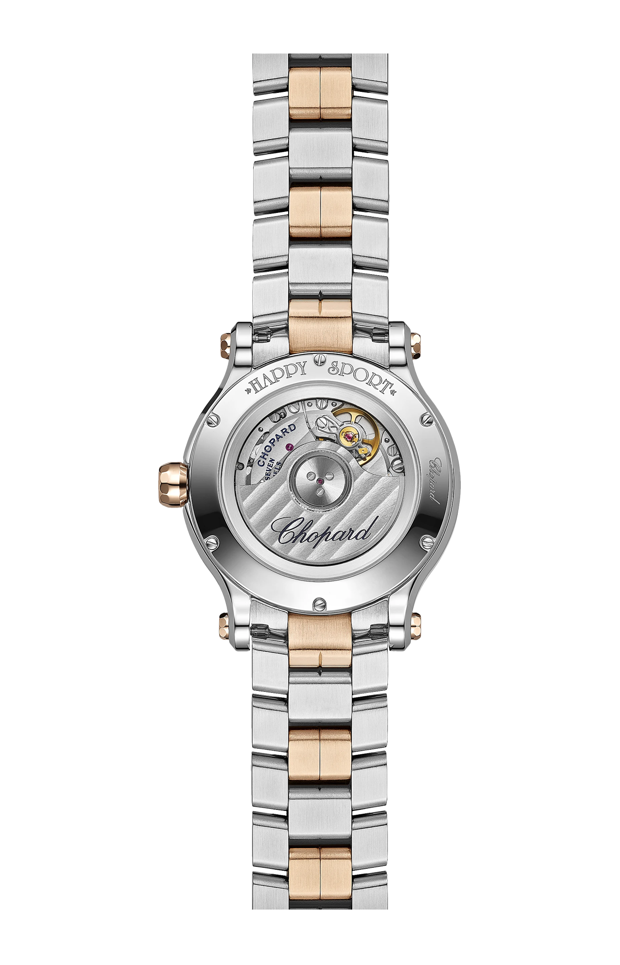 La collezione Happy Sport è l'emblema della creatività e dell'audacia di Chopard. Le sue gioiose pietre preziose, che danzano liberamente tra due vetri zaffiro, fanno sognare sin dal 1993, quando Chopard è diventata la prima maison a coniugare acciaio e diamanti. La grande competenza orologiera ha consentito a Chopard di dotare il modello Happy Sport da 33 mm di un movimento meccanico a carica automatica appositamente sviluppato per le casse dei modelli femminili. Little diamonds do great things.