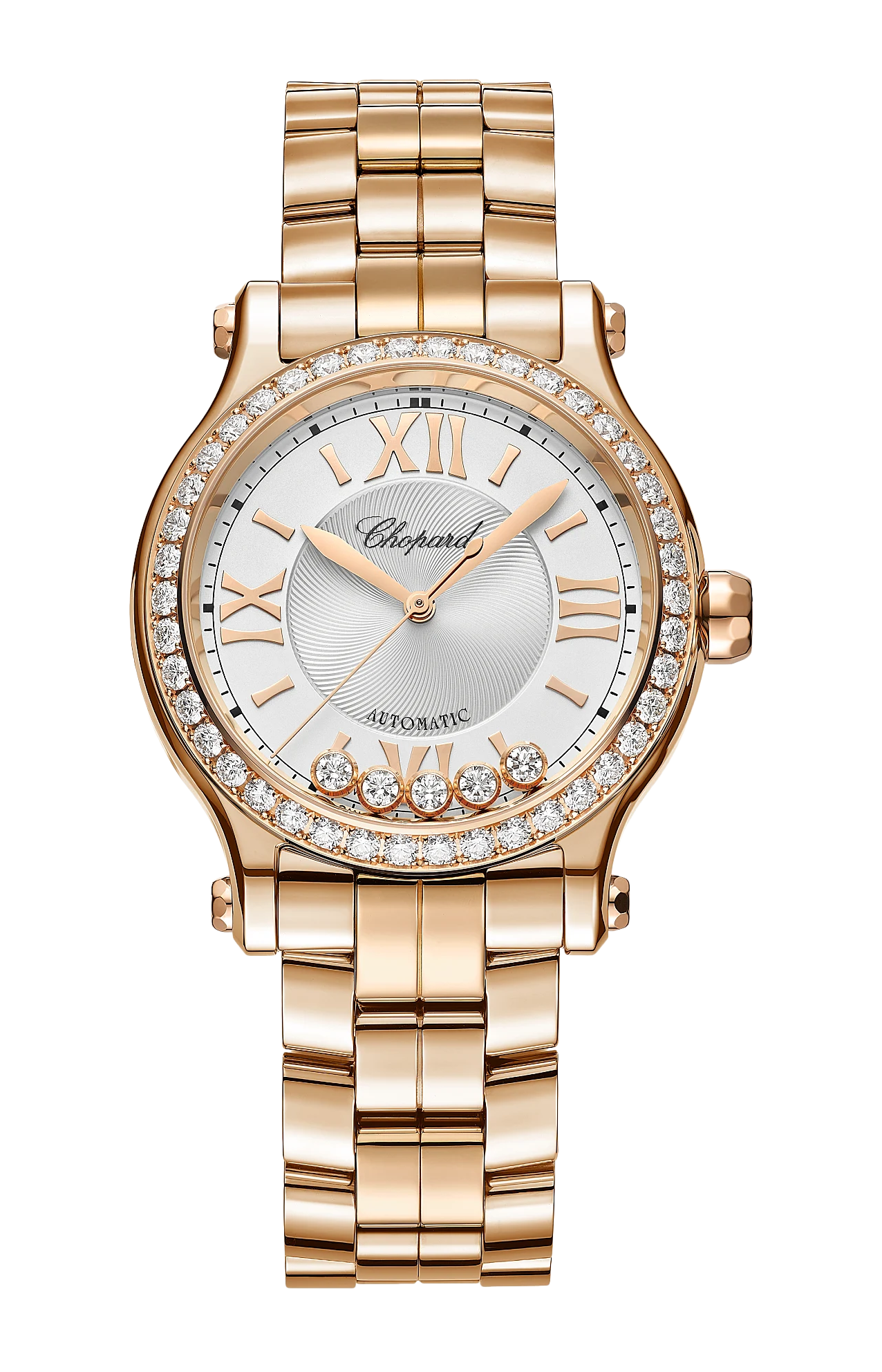 La collezione Happy Sport è l'emblema della creatività e dell'audacia di Chopard. Le sue gioiose pietre preziose, che danzano liberamente tra due vetri zaffiro, fanno sognare sin dal 1993, quando Chopard è diventata la prima maison a coniugare acciaio e diamanti. La grande competenza orologiera ha consentito a Chopard di dotare il modello Happy Sport da 33 mm di un movimento meccanico a carica automatica appositamente sviluppato per le casse dei modelli femminili. Little Diamonds Do Great Things.