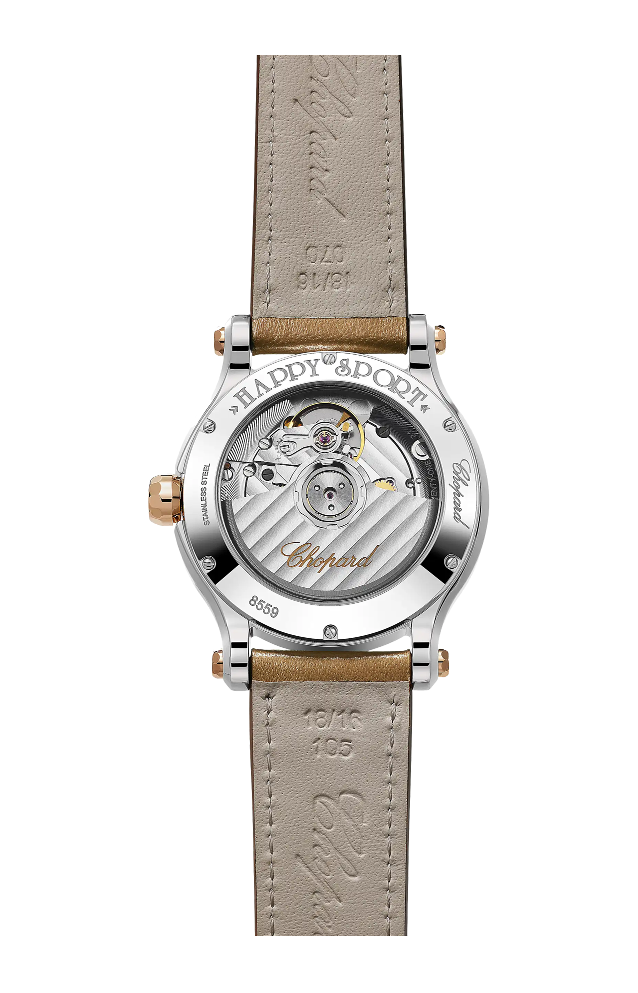 Happy sport 33 mm, automatico, oro rosa etico, lucent steel™, diamanti - 278573