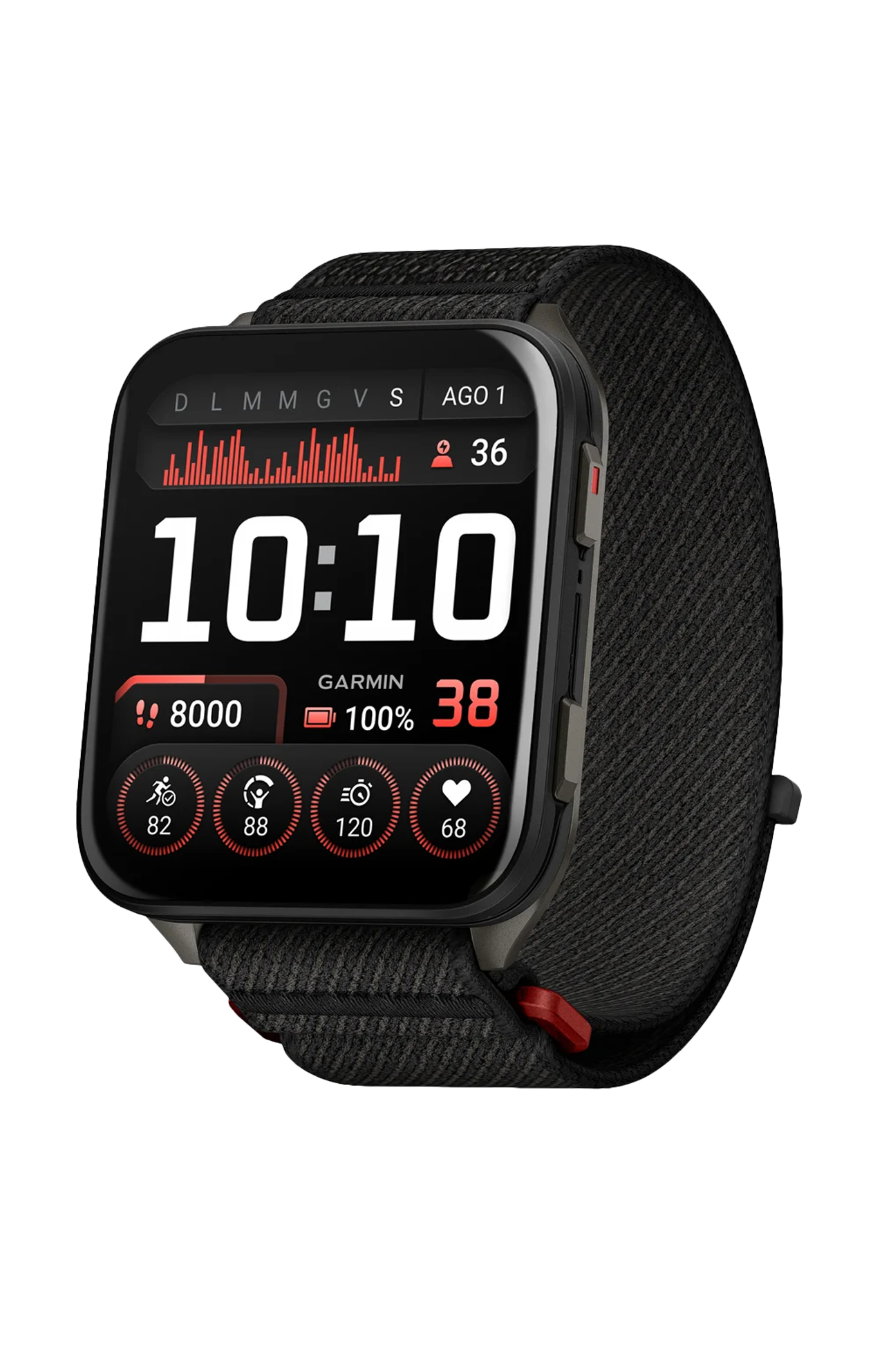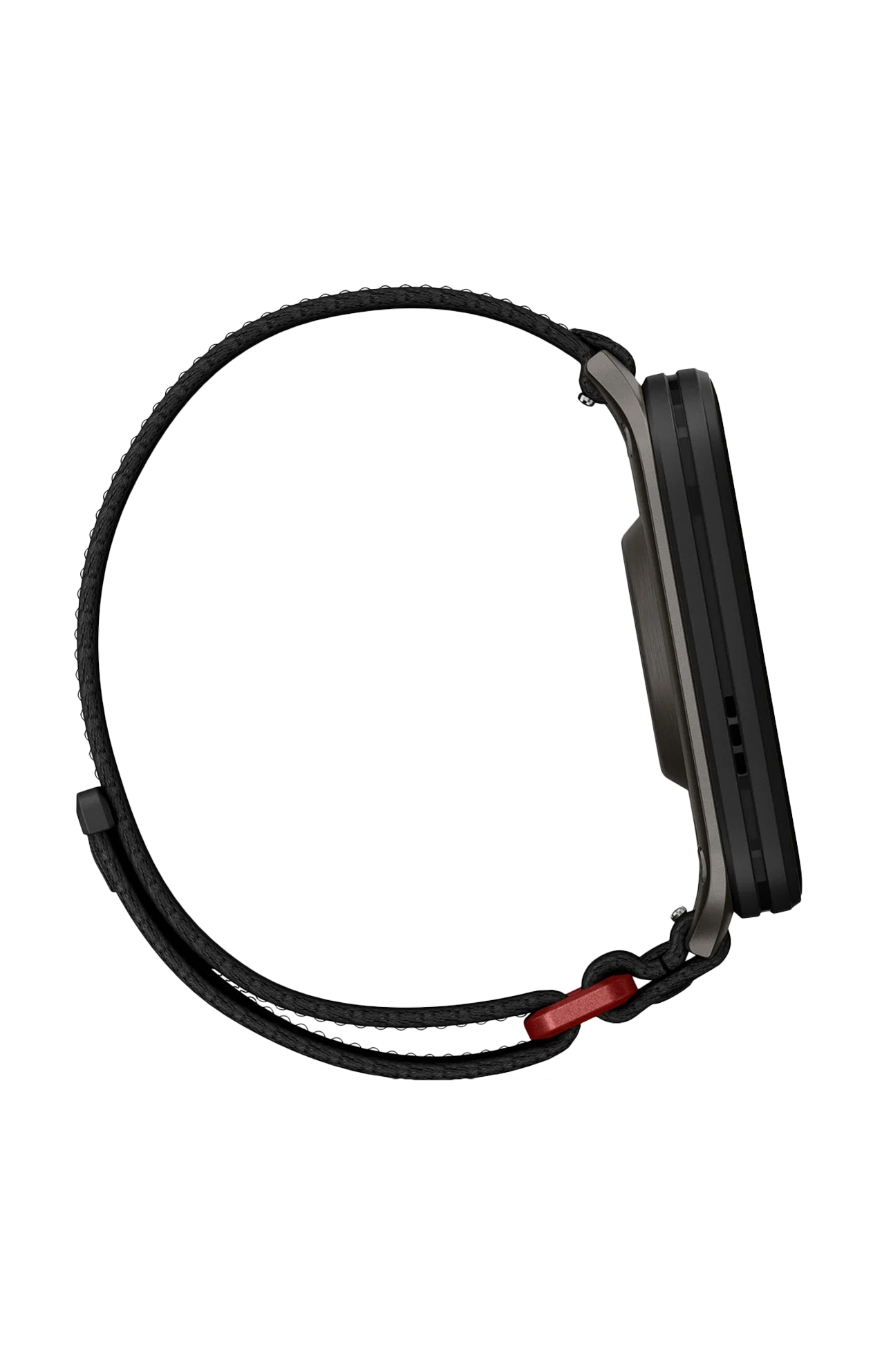 Lo smartwatch è dotato di un ampio schermo AMOLED da 2" con vetro in zaffiro; è facile da indossare tutto il giorno grazie alla leggerezza offerta dal fondello in titanio ed al comodo cinturino in nylon ComfortFit.