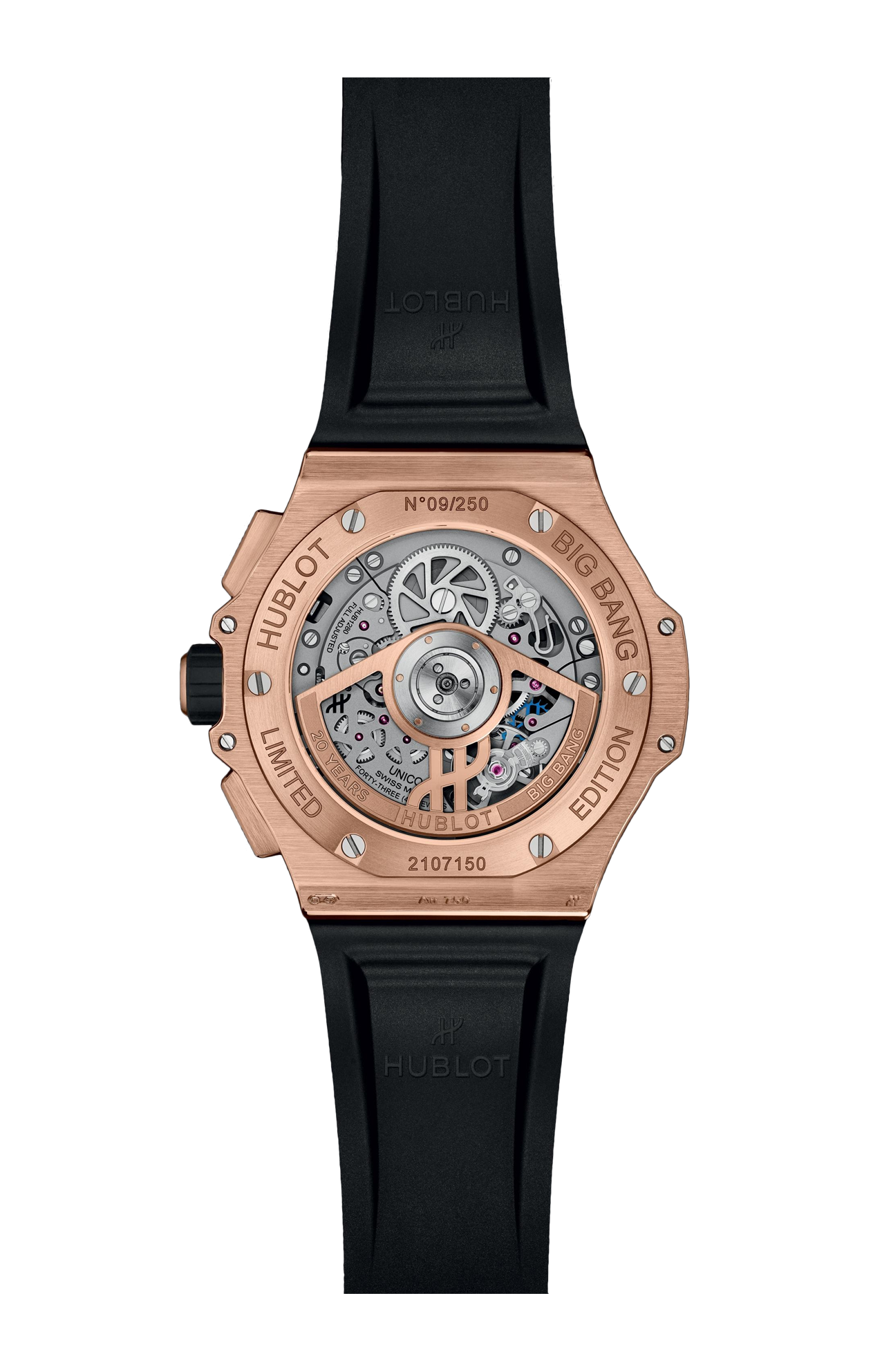Il King Gold Ceramic incarna la fusione, da parte di Hublot, di oro ottimizzato e ceramica. Arricchita con platino, la sua struttura chimica stabilizzata riduce l'ossidazione e fornisce una maggiore resistenza alla corrosione: proprietà altamente desiderabili da un materiale lavorato con precisione chirurgica, rivelando finiture lucide e spazzolate. Compatibile con la ceramica, King Gold esibisce una lucentezza calda pur mantenendo tutte le sue prestazioni meccaniche.