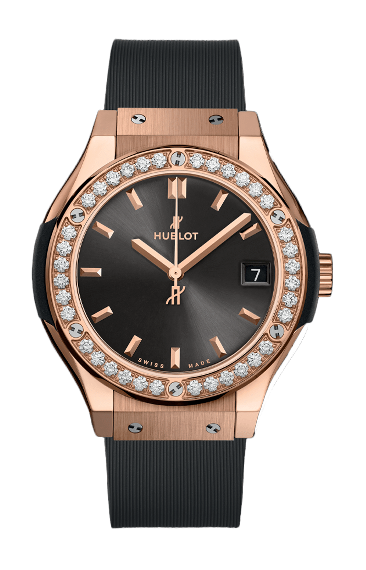Maestro della fusione e alchimista dei metalli preziosi, Hublot ha sviluppato un nuovo colore oro con una tonalità più calda rispetto al tradizionale oro 18 carati 5N. Composta principalmente da platino, questa esclusiva lega King Gold si presta perfettamente a qualsiasi tipo di finitura lucida e satinata. Gli orologi Hublot fondono i materiali più inaspettati come ceramica high-tech, gomma e carbonio.