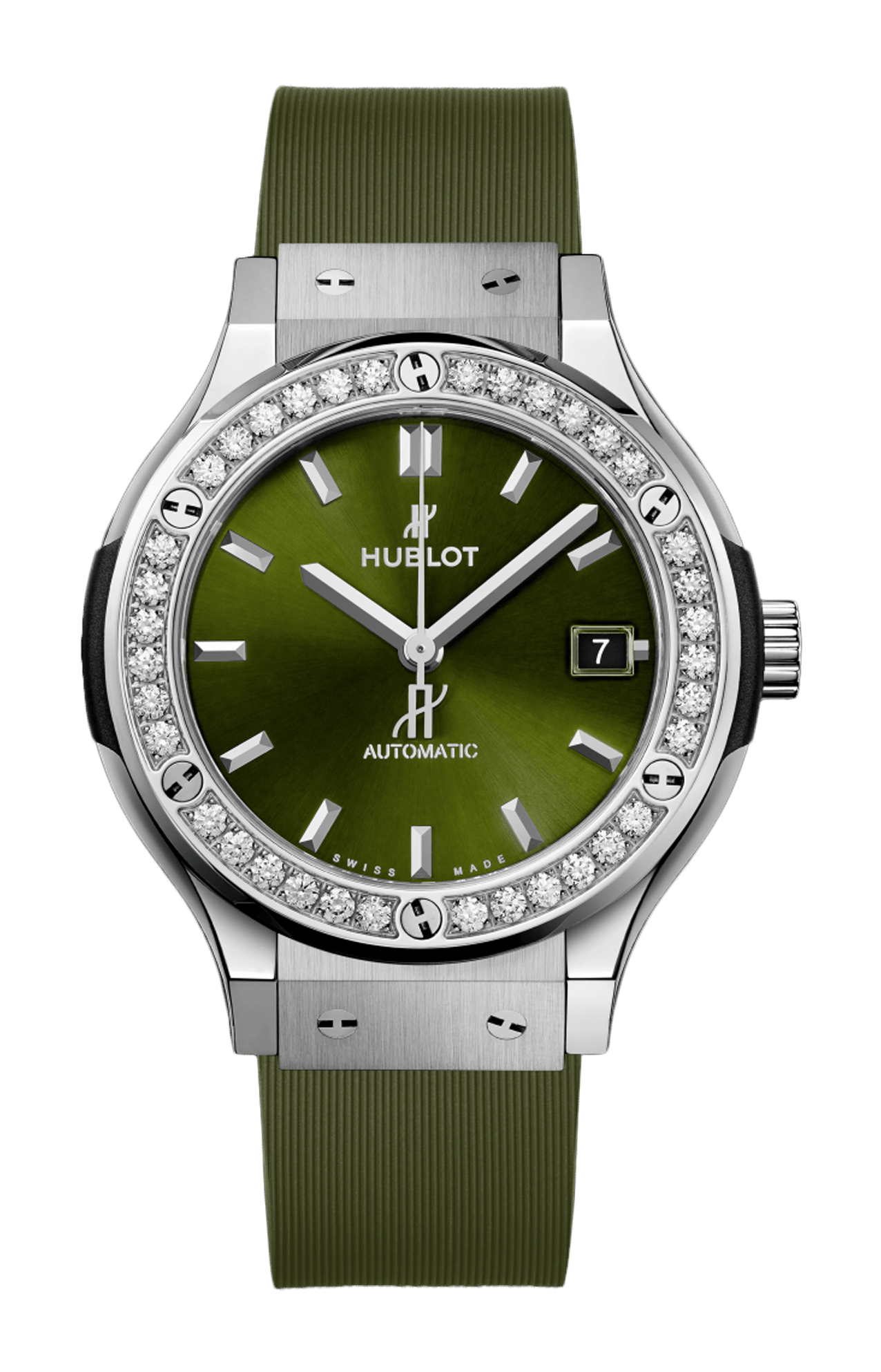Il titanio è ampiamente utilizzato da Hublot, in particolare per la sua leggerezza. Presenta il miglior rapporto tra resistenza e peso di qualsiasi altro materiale, il che lo rende un materiale estremamente popolare soprattutto in ambito aeronautico. Si distingue anche per la sua resistenza alla corrosione e la sua inerzia a contatto con la pelle. Hublot utilizza esclusivamente titanio di alta qualità, grado 5, il più resistente in assoluto. Una volta lucidato, questo materiale mantiene una leggera lucentezza metallica bluastra.