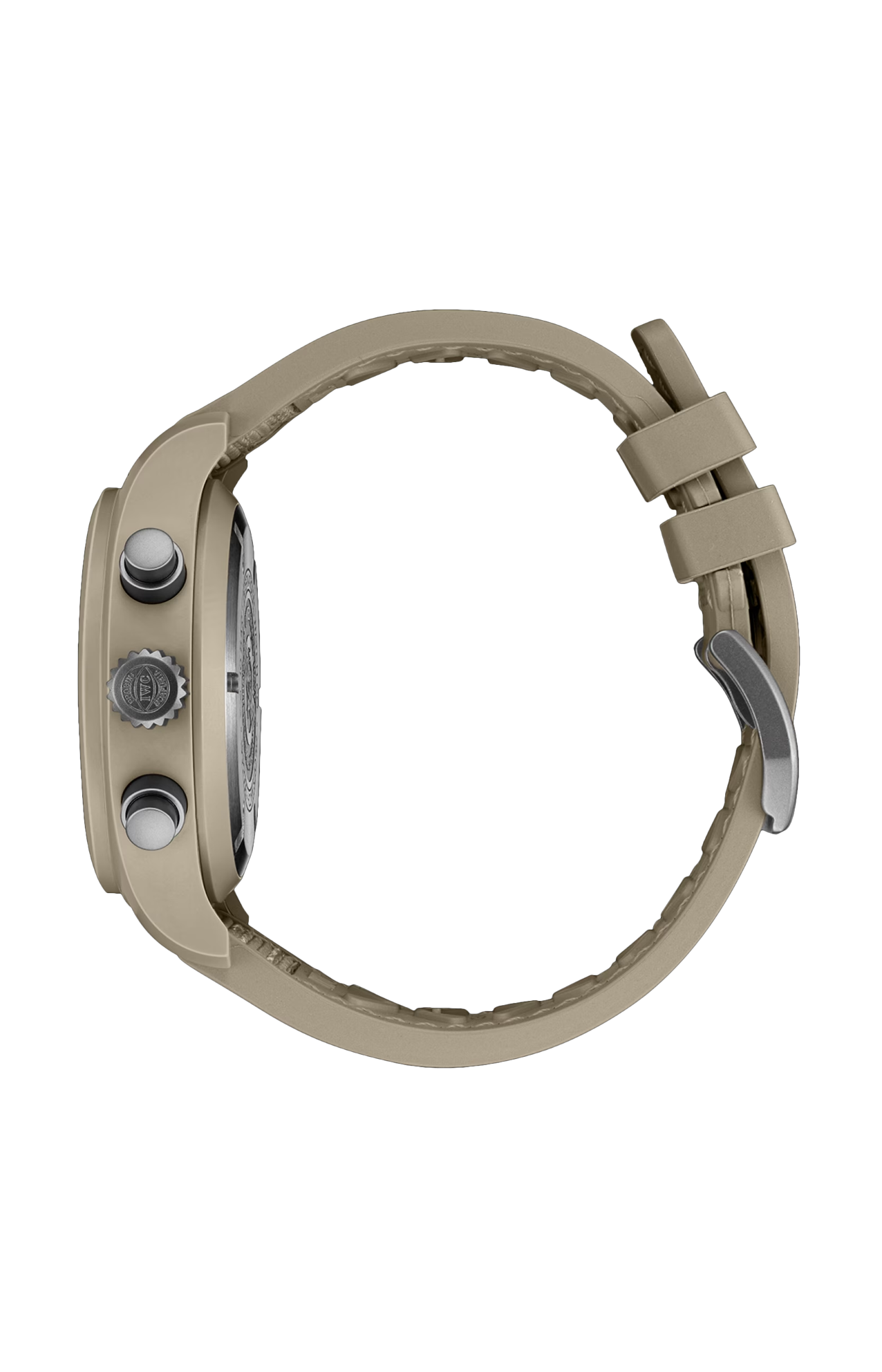 Il Pilot’s Watch Chronograph 41 Top Gun Mojave Desert presenta una cassa da 41 mm in ceramica color sabbia. Sviluppato in collaborazione con Pantone®, questo colore della ceramica è stato ispirato dalle tute di volo dei piloti della marina e dall'arido paesaggio desertico intorno a China Lake, sede della famosa scuola di volo Topgun della marina degli Stati Uniti. La ceramica è straordinariamente leggera e resistente ai graffi e rappresenta quindi il materiale perfetto per un orologio da pilota. Il quadrante marrone con indici e numeri tenui e il cinturino in caucciù beige con inserto in tessuto si abbinano perfettamente al colore della cassa in ceramica. Il fondello con la caratteristica incisione “Top Gun”, la corona e i pulsanti sono realizzati in titanio. All’interno della cassa batte il movimento calibro 69380 di manifattura IWC. Questo cronografo meccanico dal classico design con ruota a colonne è stato progettato con un'attenzione senza compromessi alla robustezza, all'affidabilità e alla precisione. Presenta la disposizione verticale dei contatori tipica di IWC, in cui i minuti cronografici sono posizionati a ore 12 per una leggibilità più facile. Inoltre, a ore 3 è presente una finestrella con il datario e l'indicazione del giorno della settimana. La cassa interna in ferro dolce protegge il movimento dagli effetti dei campi magnetici, mentre il vetro anteriore è fissato specificamente per rimanere in posizione anche in caso di cali improvvisi di pressione.