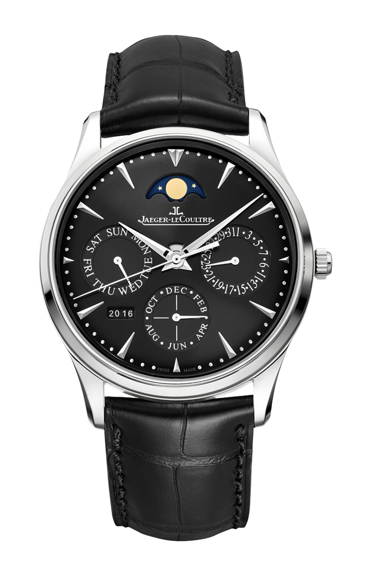 Già al primo sguardo ammalia, con il quadrante e il bracciale di colore nero. L'orologio Master Ultra Thin Perpetual in acciaio offre agli appassionati un calendario perpetuo in uno scrigno ultrapiatto dal colore profondo.