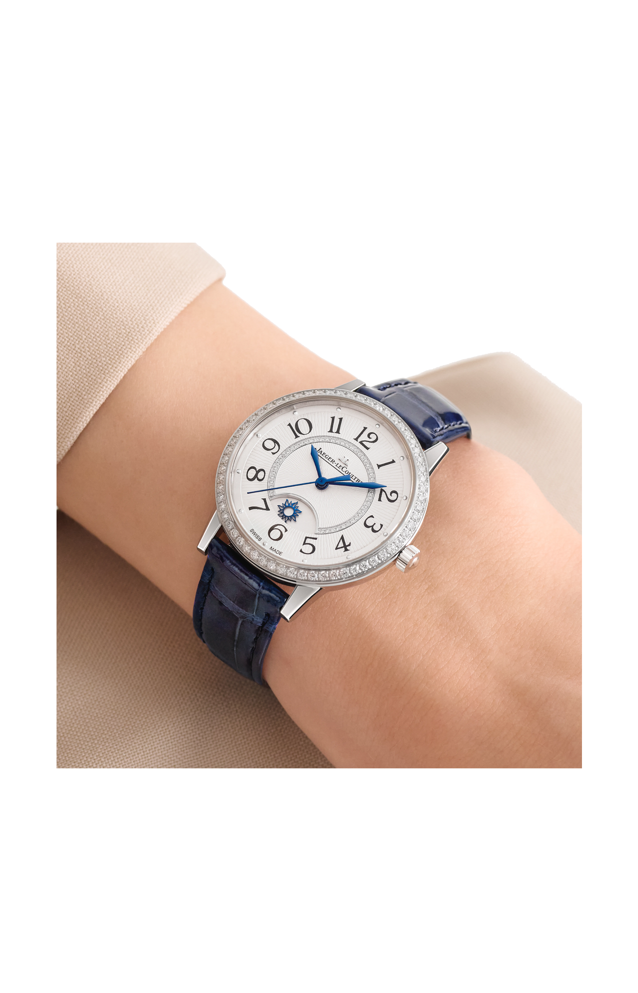 Adornato con una corona di 107 diamanti sulla lunetta e all’interno del quadrante, il Rendez-Vous Night & Day unisce la maestria della Grande Maison nell’arte orologiera e nell’alta gioielleria. In un perfetto equilibrio estetico, ogni dettaglio conferisce al segnatempo uno stile contemporaneo e prezioso. La cassa in acciaio, arricchita da lunetta e fianchi arrotondati e da anse appiattite, si distingue per la sua estrema raffinatezza. Sul quadrante argenté con finitura soleil e motivo guilloché, le funzioni dell’orologio sono perfettamente leggibili: indici e numeri floreali, lancette azzurrate, complicazione a ore 6. Ottimizzato in più aspetti – dal bariletto allo scappamento, fino alla massa oscillante – il Calibro 898 assicura 70 ore di autonomia. I diamanti incastonati a grani e il cinturino in pelle blu conferiscono al Rendez-Vous Night & Day una straordinaria eleganza.