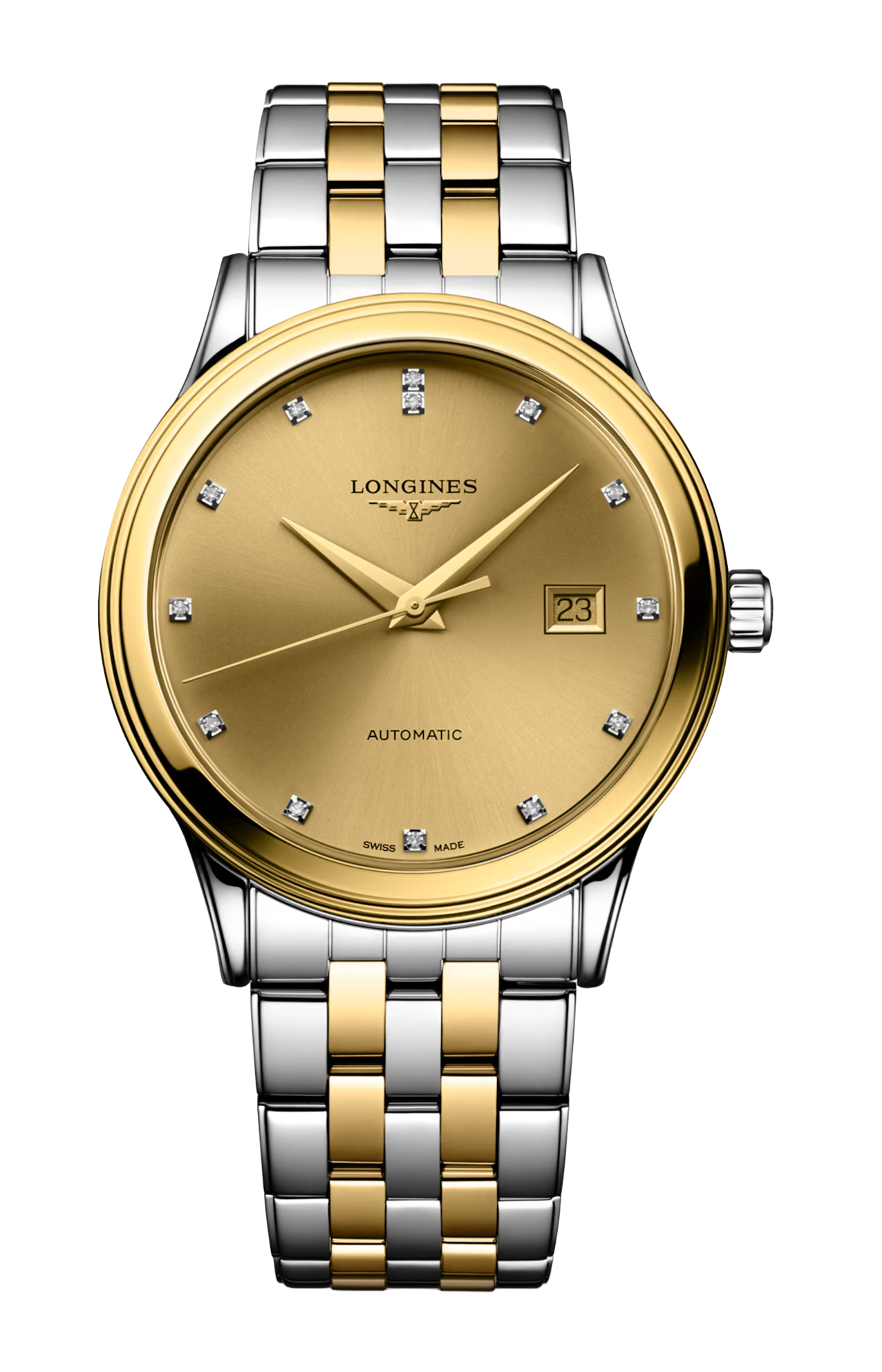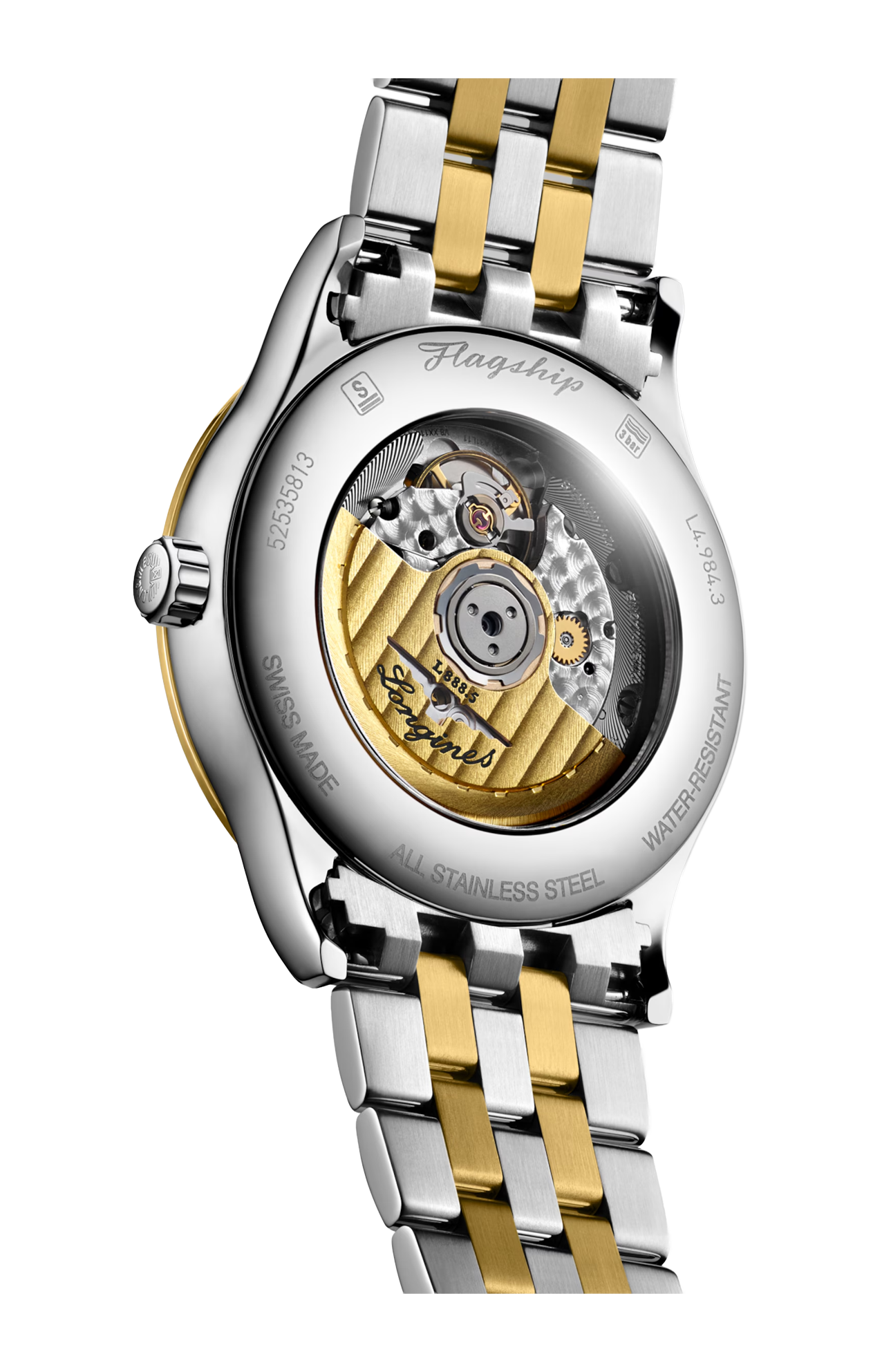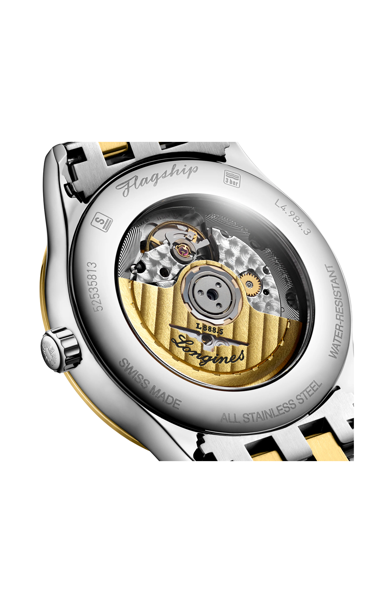 OROLOGIO AUTOMATICO, Ø 40.00 MM, ACCIAIO INOSSIDABILE E RIVESTIMENTO PVD GIALLO, L4.984.3.38.7 DATE, MOVIMENTO MECCANICO A CARICA AUTOMATICA CON FREQUENZA DI 25'200 ALTERNANZE ORARIE E RISERVA DI CARICA DI CIRCA 72 ORE, BILANCIERE-SPIRALE IN SILICIO MONOCRISTALLINO. IMPERMEABILE FINO A 3 BAR, VETRO ZAFFIRO ANTIGRAFFIO BOMBATO CON TRATTAMENTO ANTIRIFLESSO MULTISTRATO SUL LATO INTERNO. QUADRANTE DORATO. BRACCIALE IN ACCIAIO INOSSIDABILE E RIVESTIMENTO PVD GIALLO, CON CHIUSURA DÉPLOYANTE A TRIPLA SICUREZZA E MECCANISMO DI APERTURA A PRESSIONE.
