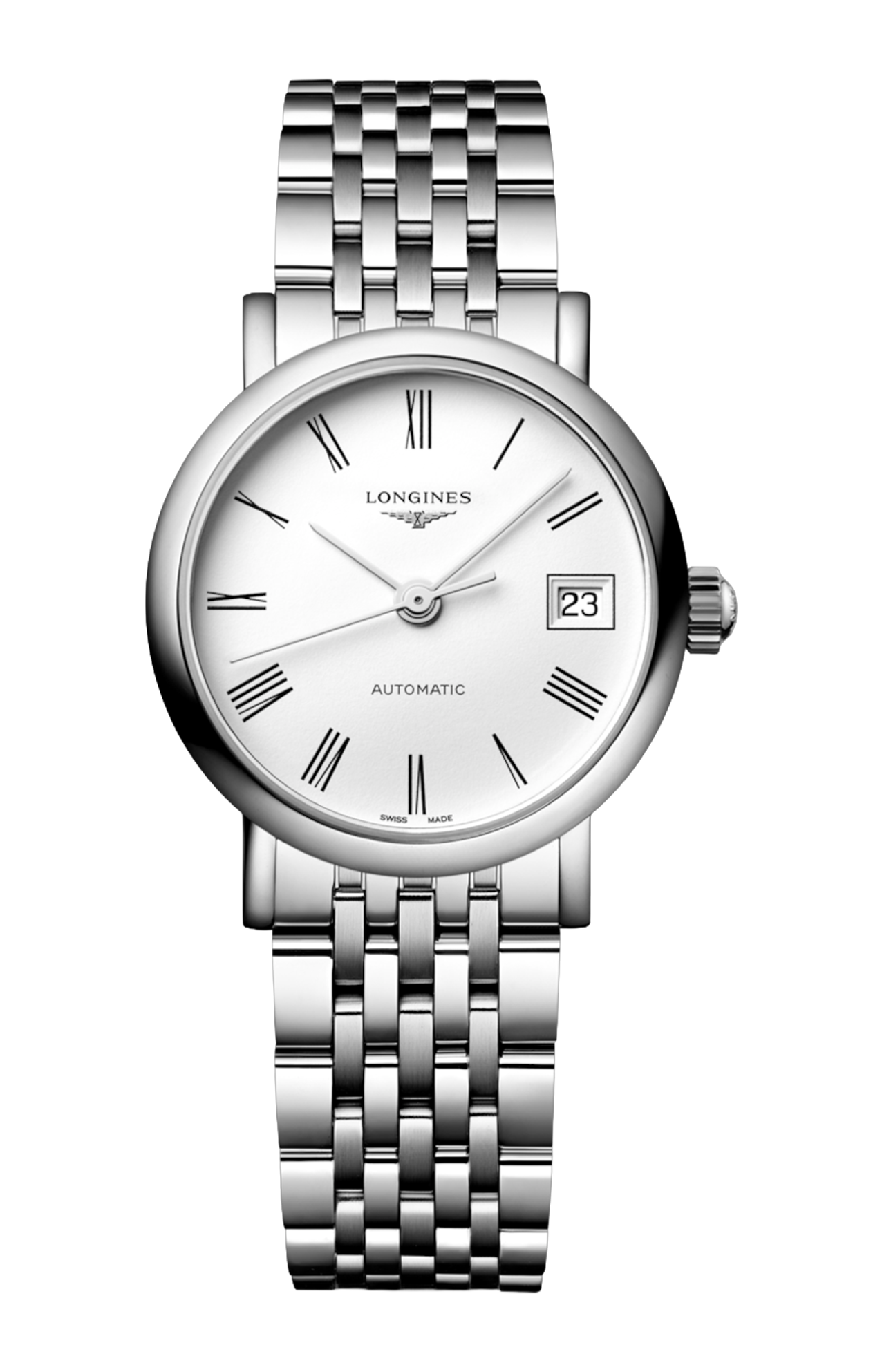 OROLOGIO AUTOMATICO, Ø 25.50 MM, ACCIAIO INOSSIDABILE, L4.309.4.18.6 DATE, MOVIMENTO MECCANICO A CARICA AUTOMATICA CON FREQUENZA DI 28'800 ALTERNANZE ORARIE E RISERVA DI CARICA DI CIRCA 45 ORE, BILANCIERE-SPIRALE IN SILICIO MONOCRISTALLINO. IMPERMEABILE FINO A 3 BAR, VETRO ZAFFIRO ANTIGRAFFIO. QUADRANTE BIANCO MAT. BRACCIALE IN ACCIAIO INOSSIDABILE, CON CHIUSURA DÉPLOYANTE A TRIPLA SICUREZZA E MECCANISMO DI APERTURA A PRESSIONE.