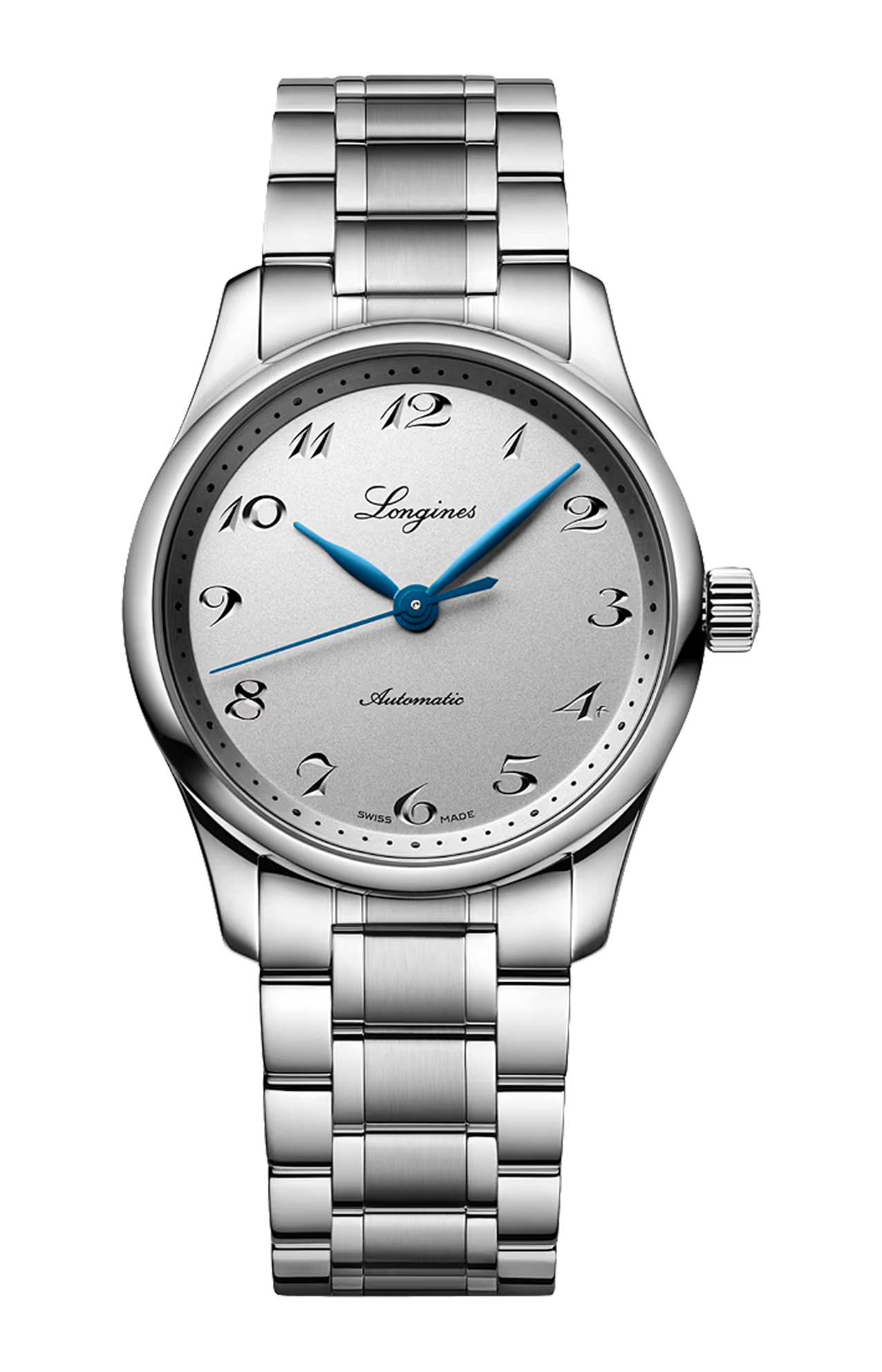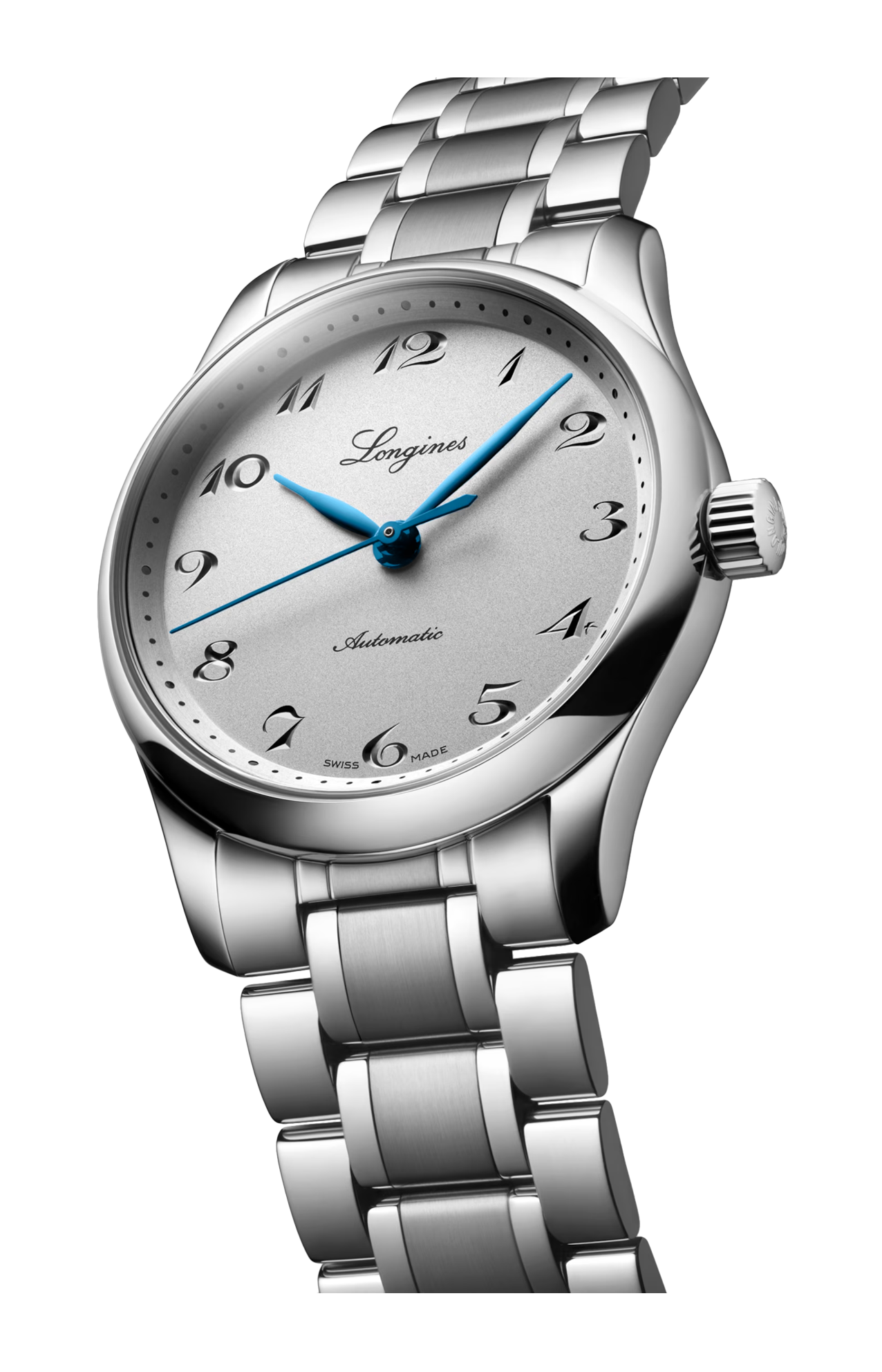 Movimento meccanico a carica automatica con frequenza di 25'200 alternanze orarie e riserva di carica di circa 72 ore, bilanciere-spirale in silicio monocristallino. Impermeabile fino a 3 bar, vetro zaffiro antigraffio con trattamento antiriflesso multistrato su entrambi i lati. Quadrante argento. Bracciale in acciaio inossidabile, con chiusura déployante a tripla sicurezza e meccanismo di apertura a pressione.