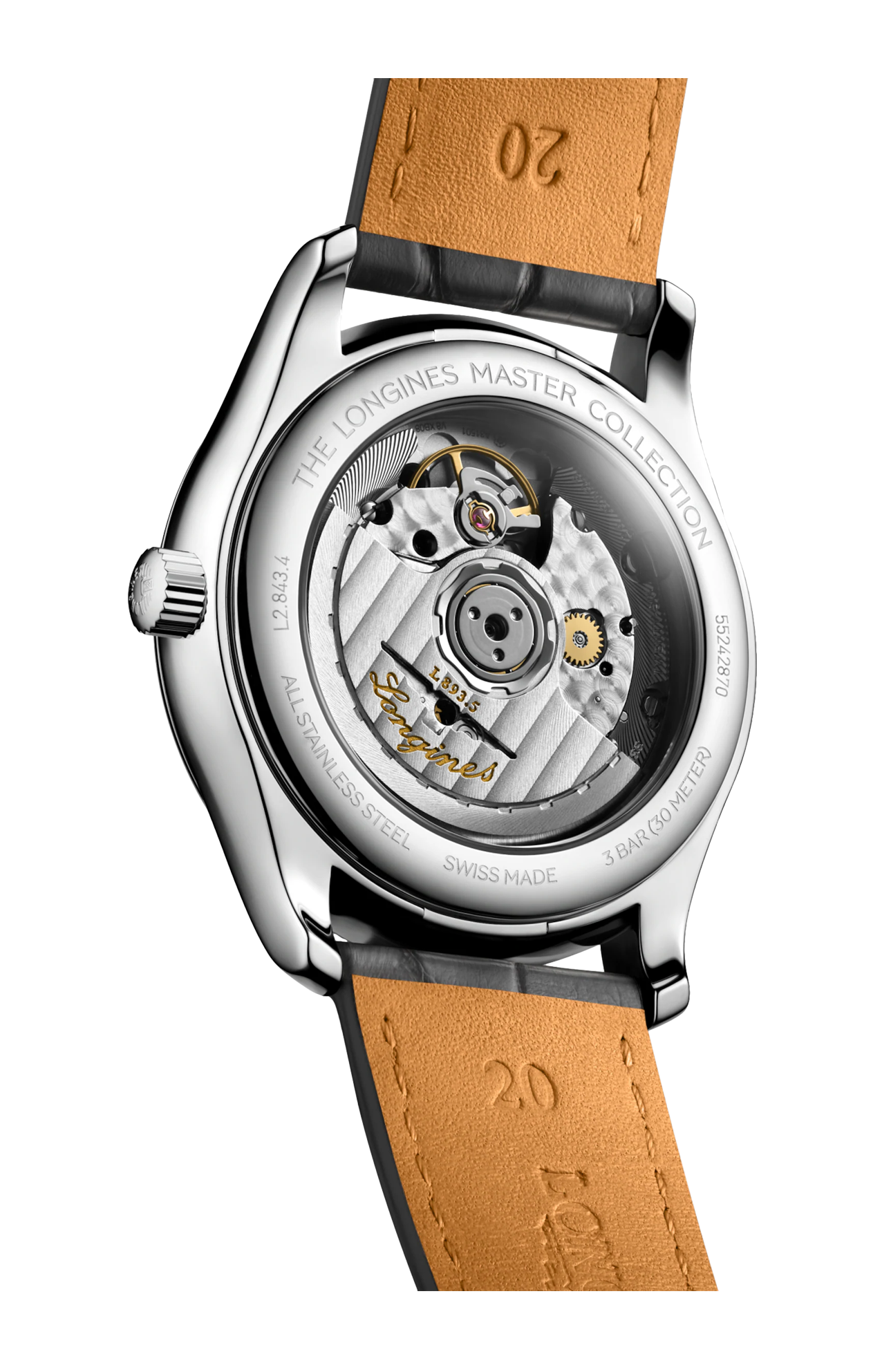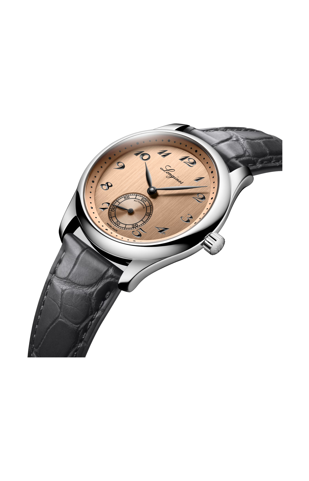 Movimento meccanico a carica automatica con frequenza di 25'200 alternanze orarie e riserva di carica di circa 72 ore, bilanciere-spirale in silicio monocristallino. Impermeabile fino a 3 bar, vetro zaffiro antigraffio con trattamento antiriflesso multistrato su entrambi i lati. Quadrante salmone. Bracciale in cinturino in alligatore, con chiusura déployante a tripla sicurezza e meccanismo di apertura a pressione.