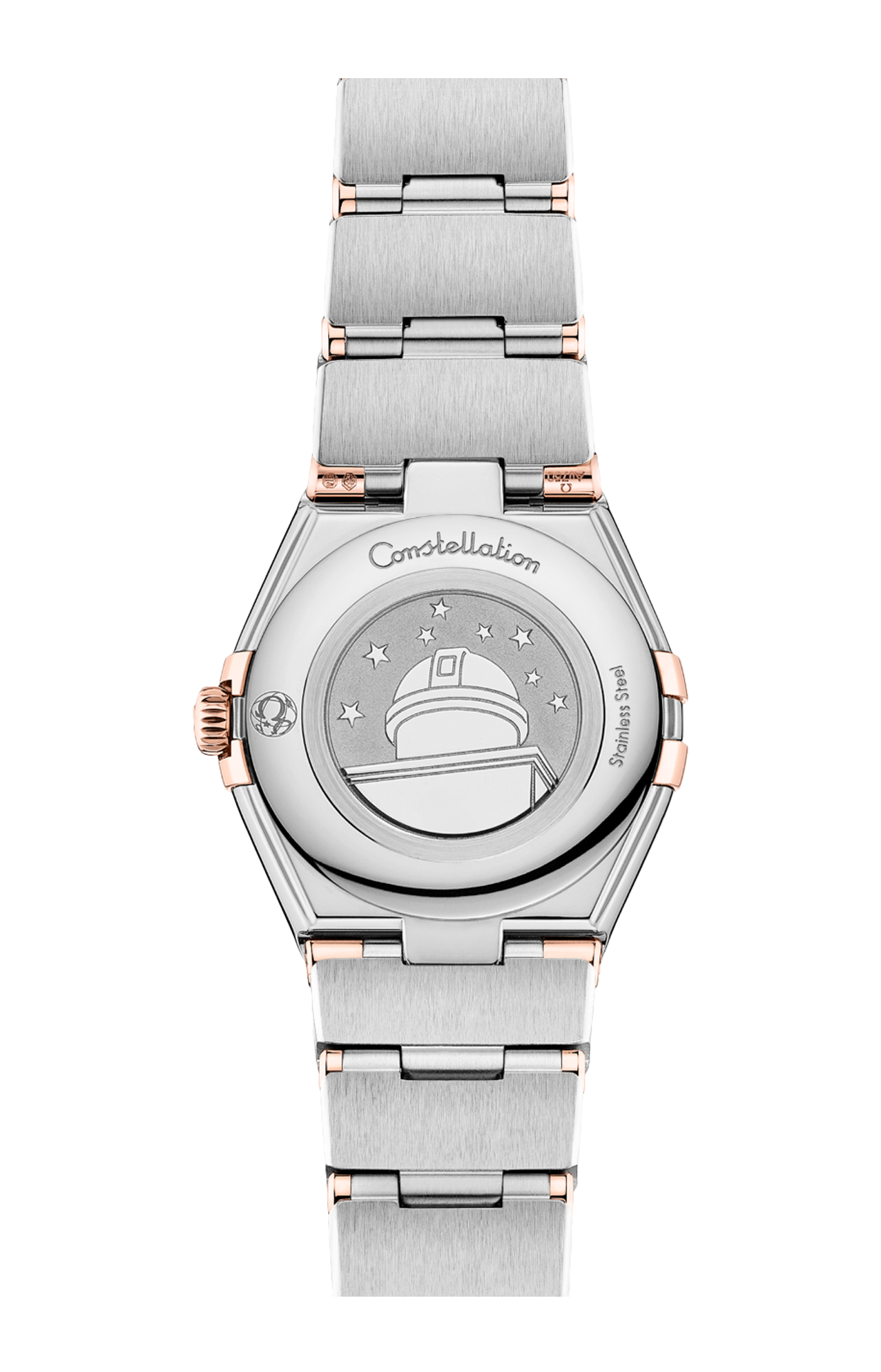 L'orologio, corredato dal caratteristico bracciale "Mono Rang" con comodo sistema di regolazione, è animato dal calibro Omega 4061, celato dal medaglione Constellation con l’effigie dell’osservatorio impressa sul fondello.