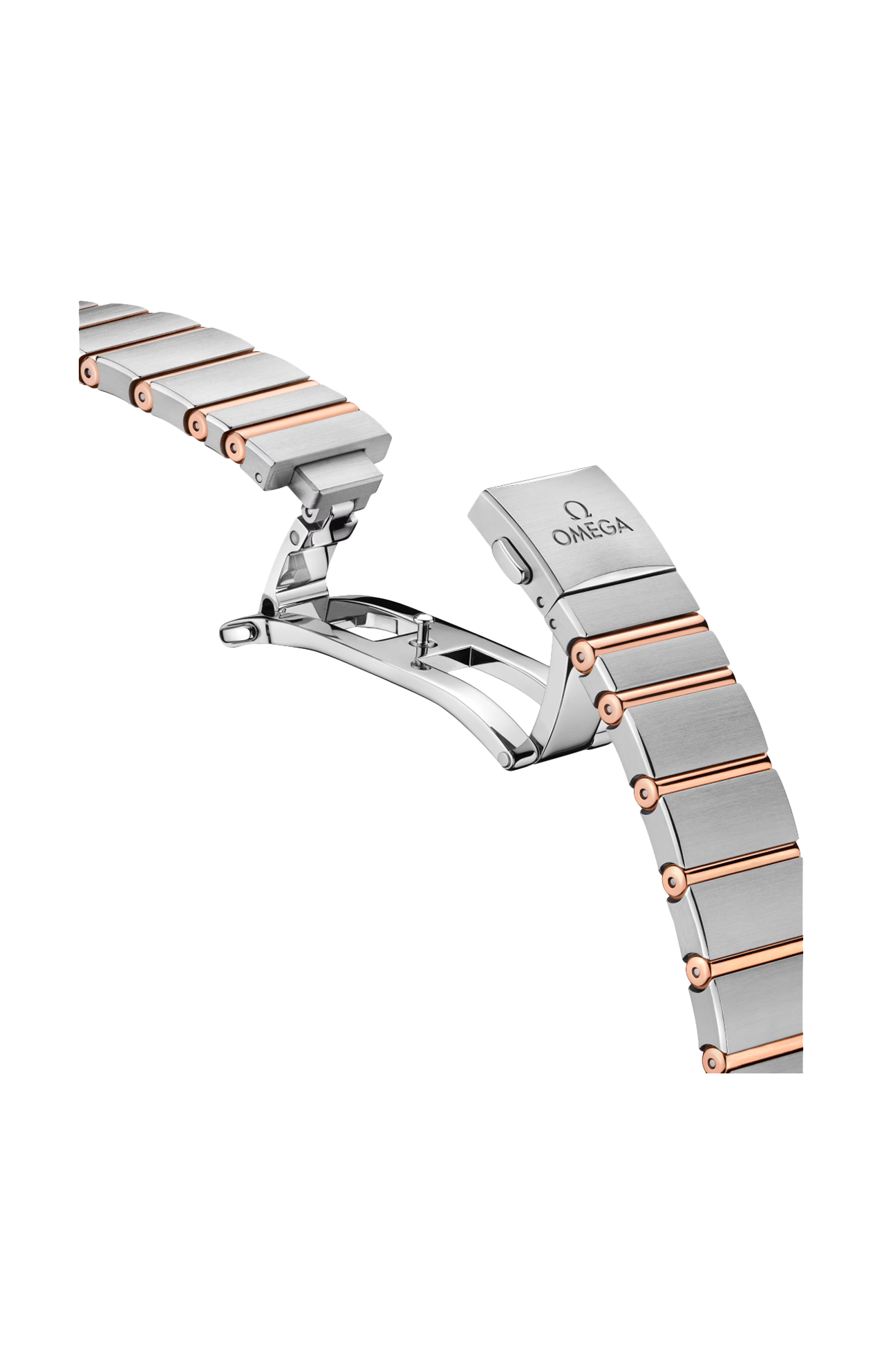 L’orologio presenta una cassa da 28 mm corredata da un bracciale “Mono Rang” in acciaio inossidabile e oro Sedna™ 18K e integra molte delle caratteristiche distintive della linea Constellation, come le griffe lucide, le sfaccettature a mezzaluna e la lunetta tempestata di diamanti.