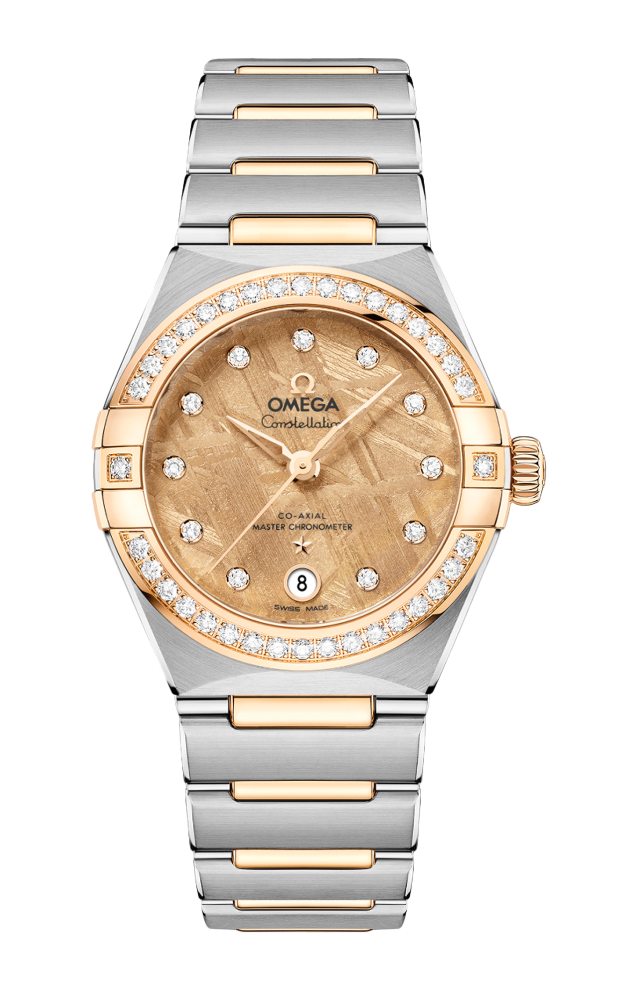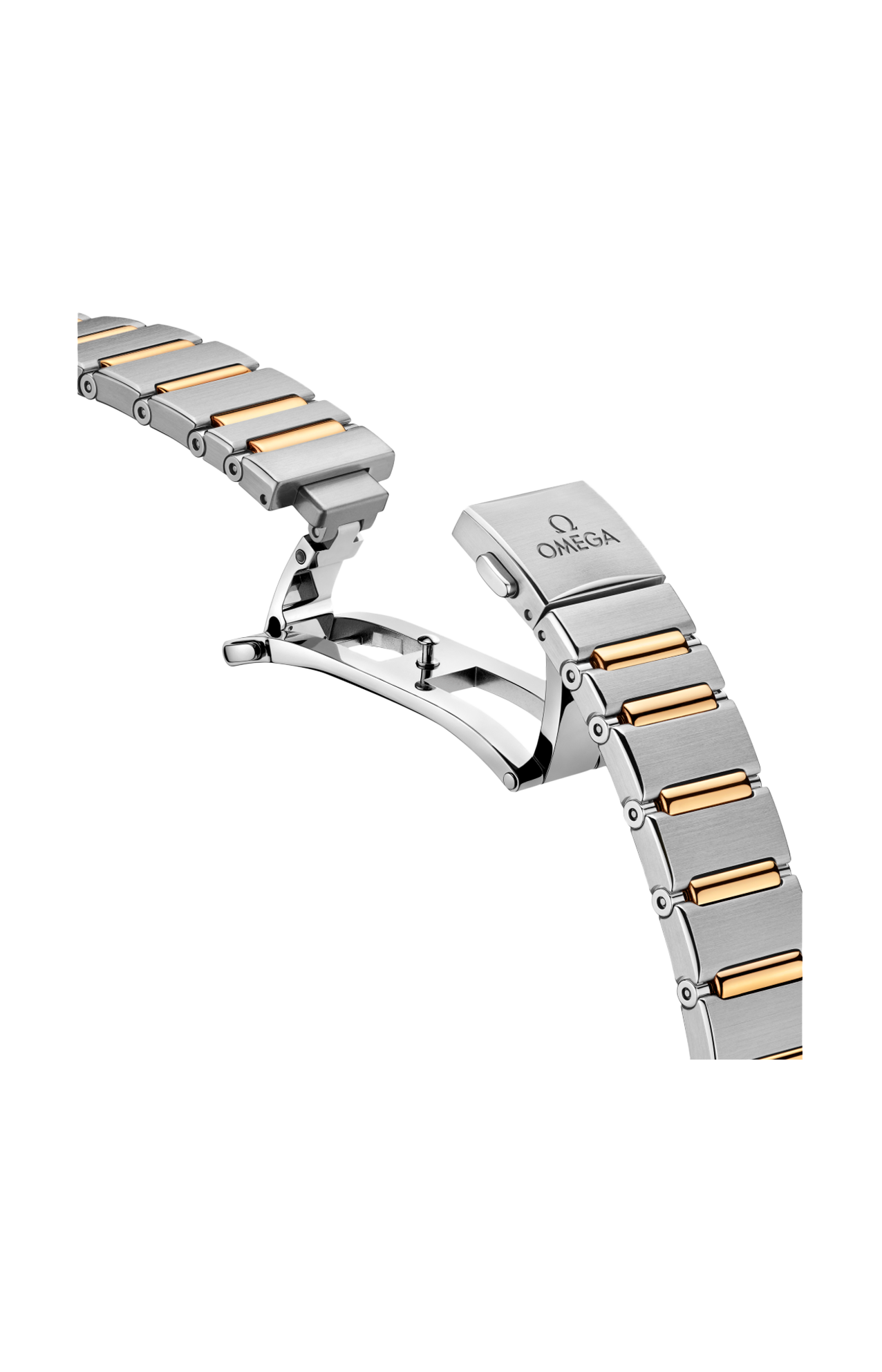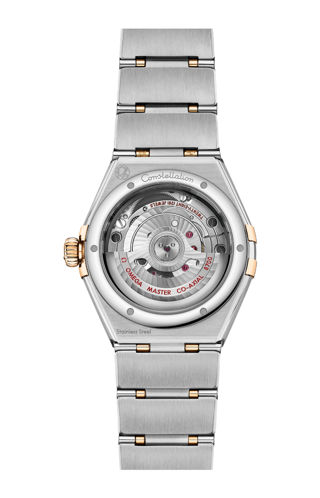 L’orologio presenta una cassa da 29 mm corredata da un bracciale “mono rang” in acciaio inossidabile e oro giallo 18K e integra molte delle caratteristiche distintive della linea Constellation, come le griffe lucide, le sfaccettature a mezzaluna e la lunetta tempestata di diamanti.