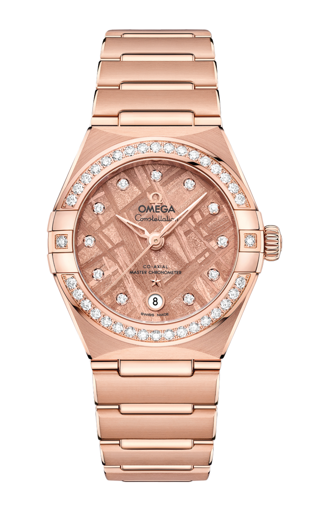 Il meraviglioso quadrante è realizzato a partire da un vero frammento di meteorite di ferro, sottoposto a trattamento in PVD oro Sedna™. Il motivo naturale interno al meteorite è unico per ogni modello, elemento che ne garantisce l'unicità. Completano il design dell’orologio un datario a finestrella a ore 6, gli indici delle ore con diamanti e la stella Constellation in oro Sedna™ 18K.