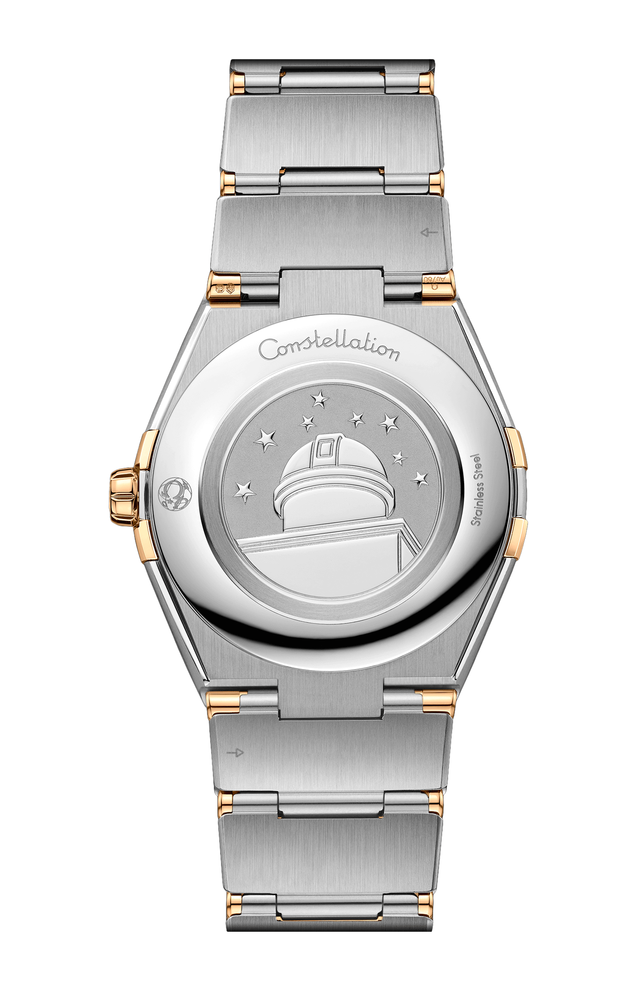 Il segnatempo batte al ritmo del calibro Omega 4564, racchiuso in un fondello spazzolato con goffratura recante il medaglione Constellation con l’effigie dell’osservatorio.