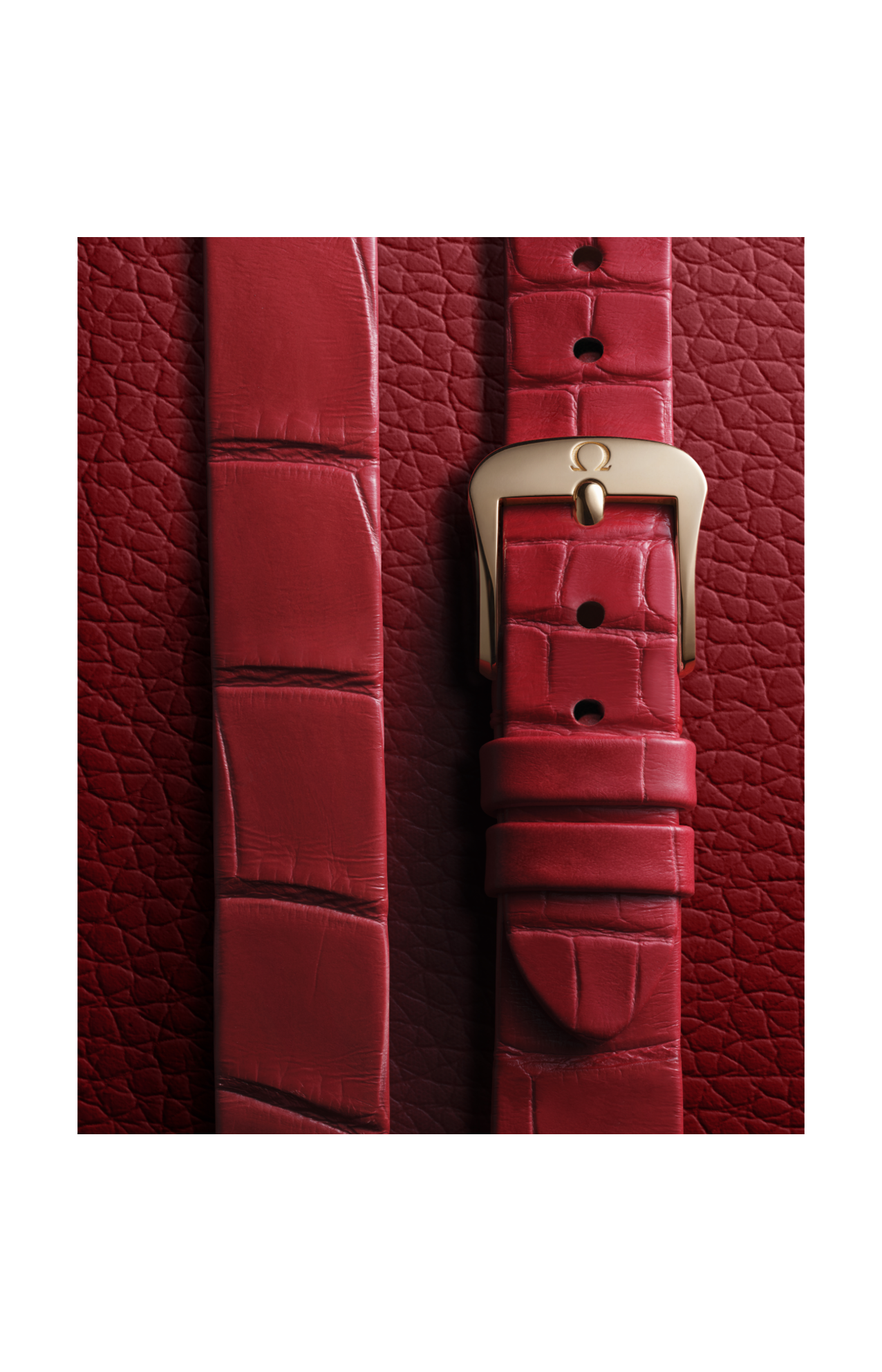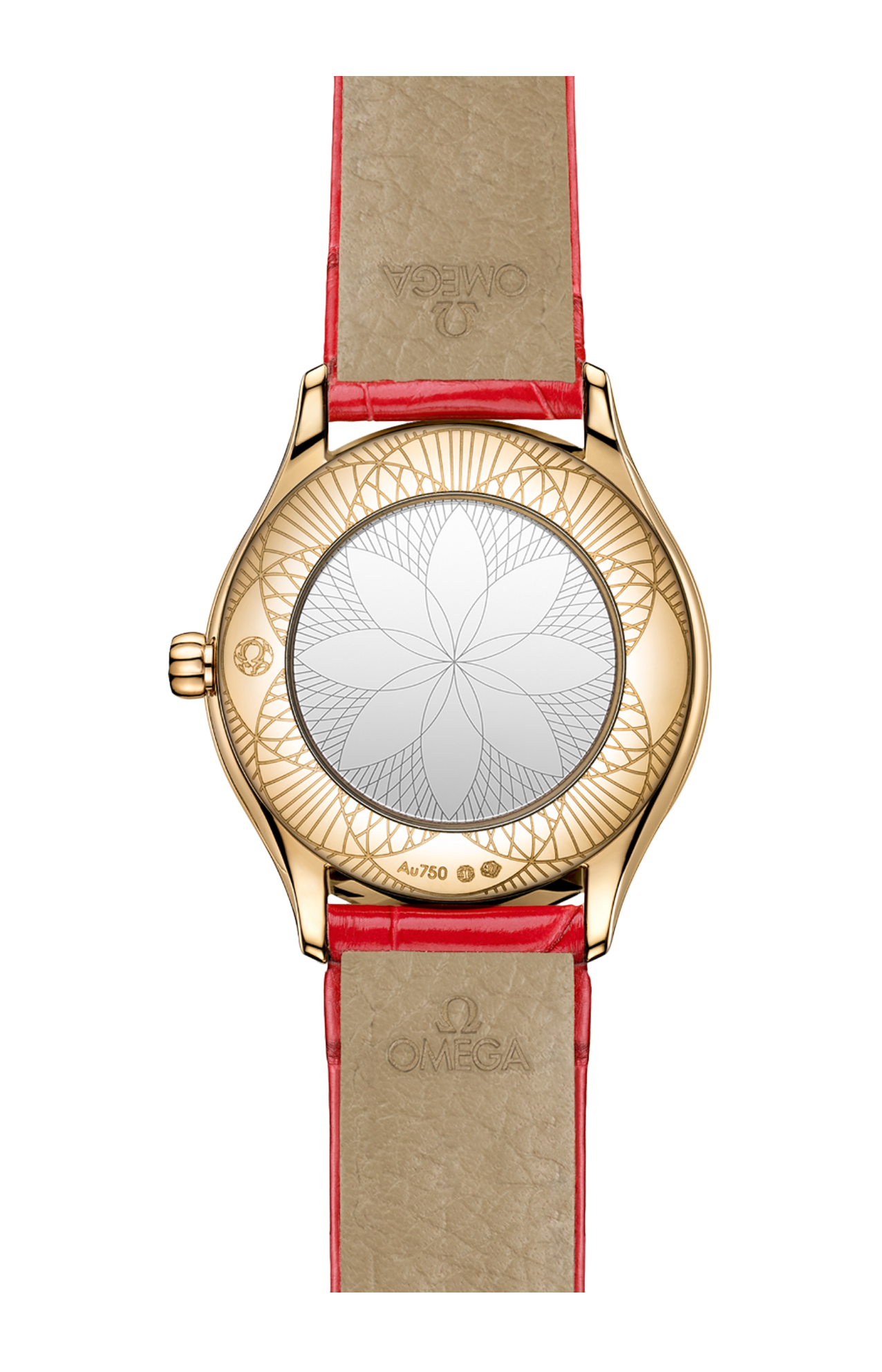 Corredato da un cinturino a doppio giro in pelle di alligatore laccata rossa con fibbia Trésor, l’orologio è animato dal calibro Omega 4061, alloggiato nello speciale fondello a specchio con motivo metallizzato “Her Time”.