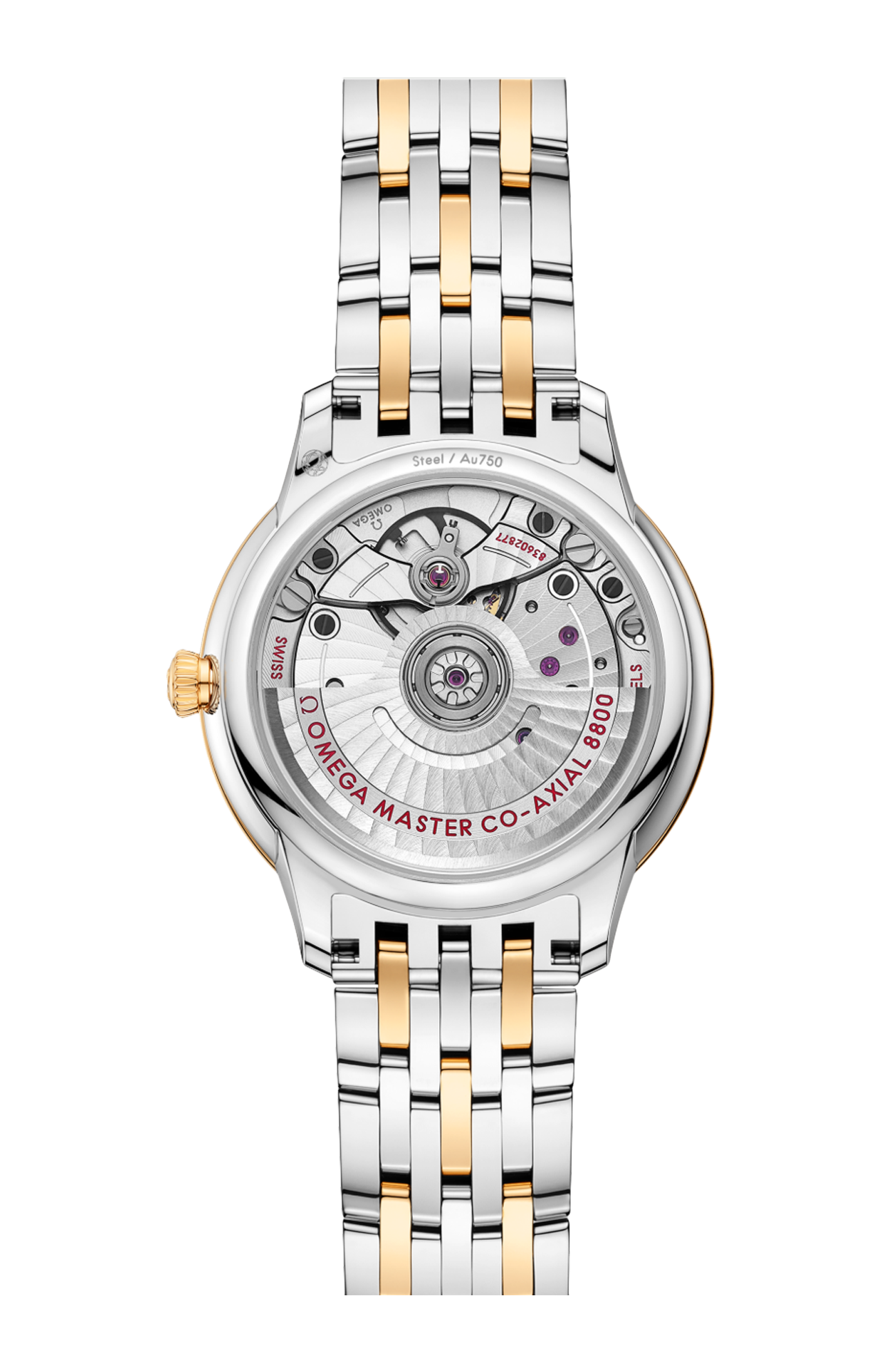 L’orologio, certificato Master Chronometer, è corredato da un bracciale in oro giallo e acciaio inossidabile, e animato dal calibro Omega Master Co-Axial 8800, visibile attraverso il fondello in vetro zaffiro resistente ai graffi.