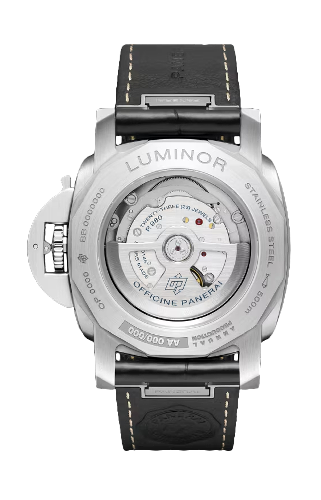 Il nuovo Luminor Marina introduce aggiornamenti chiave che ne affinano le prestazioni, la resistenza e il comfort, preservandone al contempo l'identità emblematica. La collezione presenta ora una maggiore resistenza all'acqua fino a 50 bar (~500 metri), stabilendo un nuovo standard per il Luminor Marina. L'introduzione del movimento P.980 garantisce la precisione con una riserva di carica di tre giorni, offrendo una maggiore stabilità grazie al ponte del bilanciere passante. I nuovi modelli incorporano il Super-Luminova® X2, un materiale luminescente di nuova generazione che offre una maggiore luminosità, garantendo una leggibilità ottimale in tutte le condizioni di illuminazione. Secondo cinturino caucciù verde.