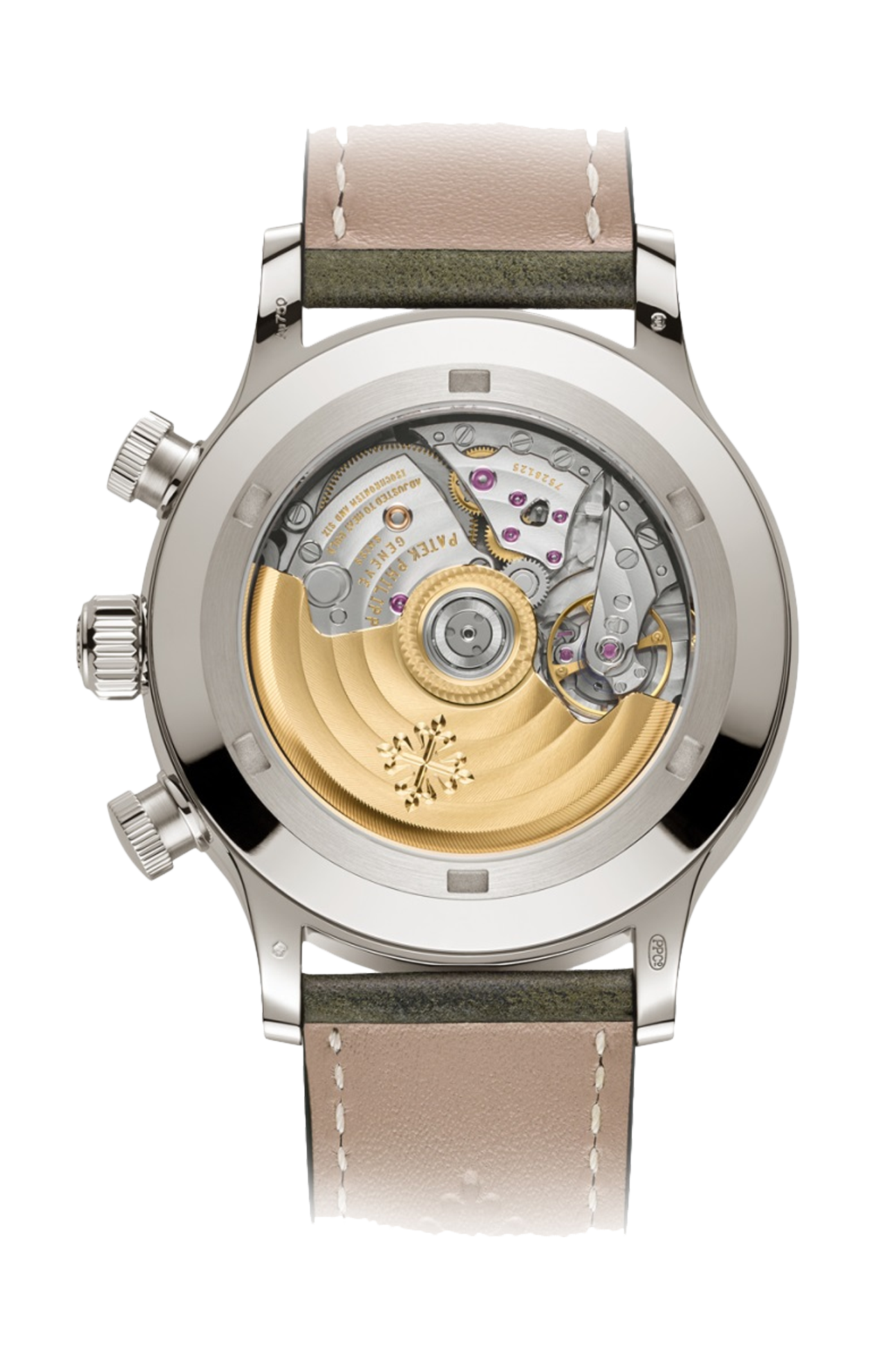 Patek Philippe presenta il suo primo modello cronografo nella sua linea di orologi stile pilot, dotato di doppio fuso orario Travel Time e di indicazione della data a lancetta associata all’ora locale. Questo nuovo modello automatico, dall’estetica originale e molto riconoscibile, è proposto in due versioni in oro bianco: la Ref. 5924G-001, con quadrante blu-grigio soleil e cinturino in vitello blu marino martellato, e la Ref. 5924G-010, con quadrante laccato verde kaki e cinturino verde oliva con finitura vintage. I quadranti sono dotati di cifre applicate e di lancette a gladio in oro bianco con rivestimento luminescente.