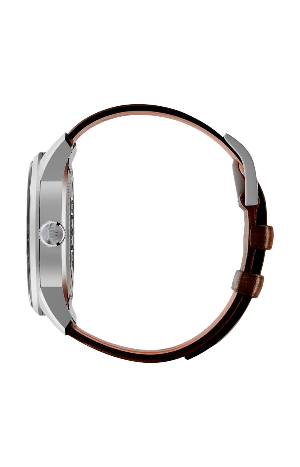 La nuova cassa di 40mm, dallo spessore totale di 10,9mm, vetro zaffiro bombato incluso e monta un movimento automatico con data a ore 6. Il modello si declina in 8 referenze, di cui 4 con un bracciale in acciaio e 4 con cinturino in cuoio anticato.